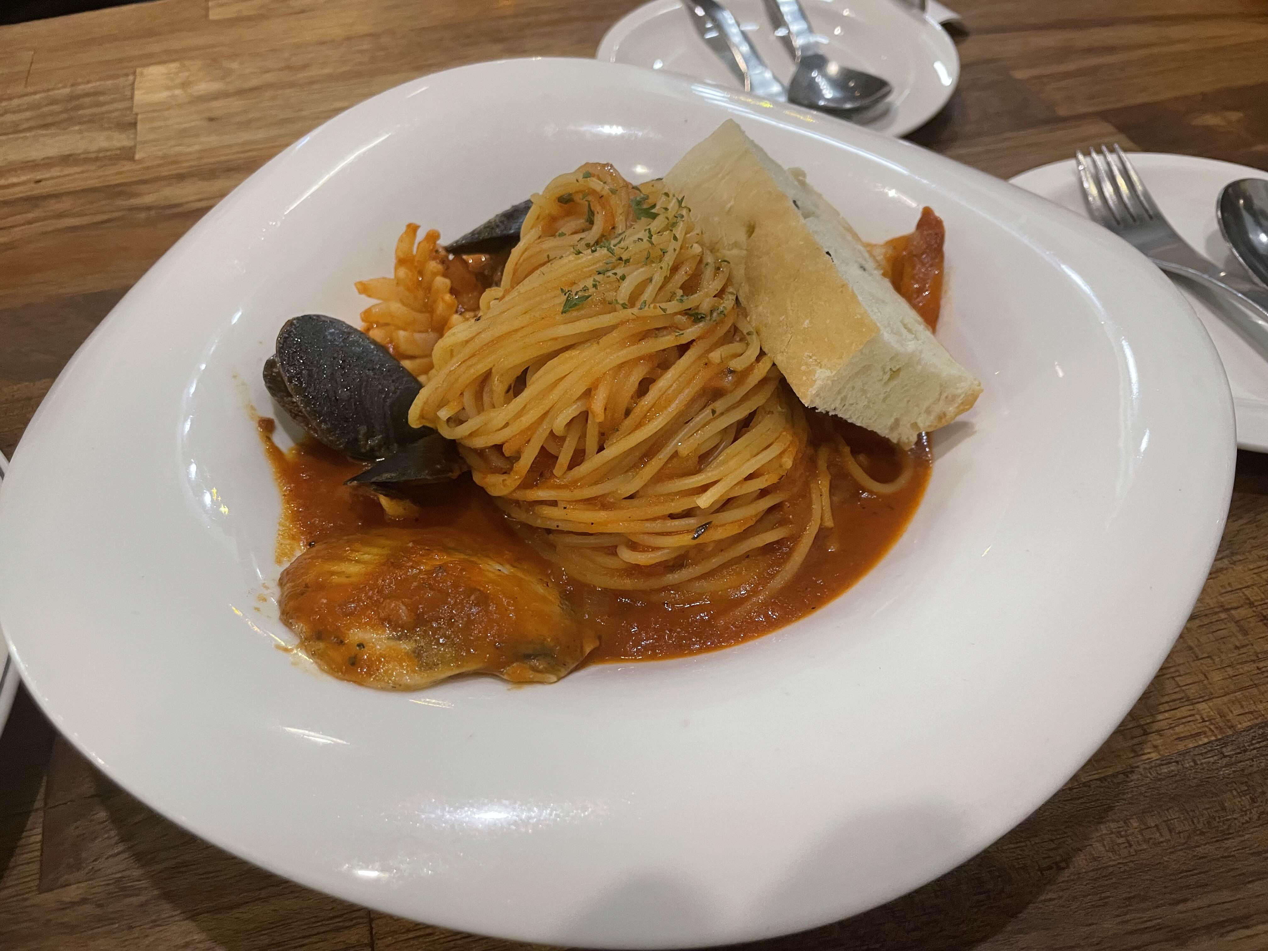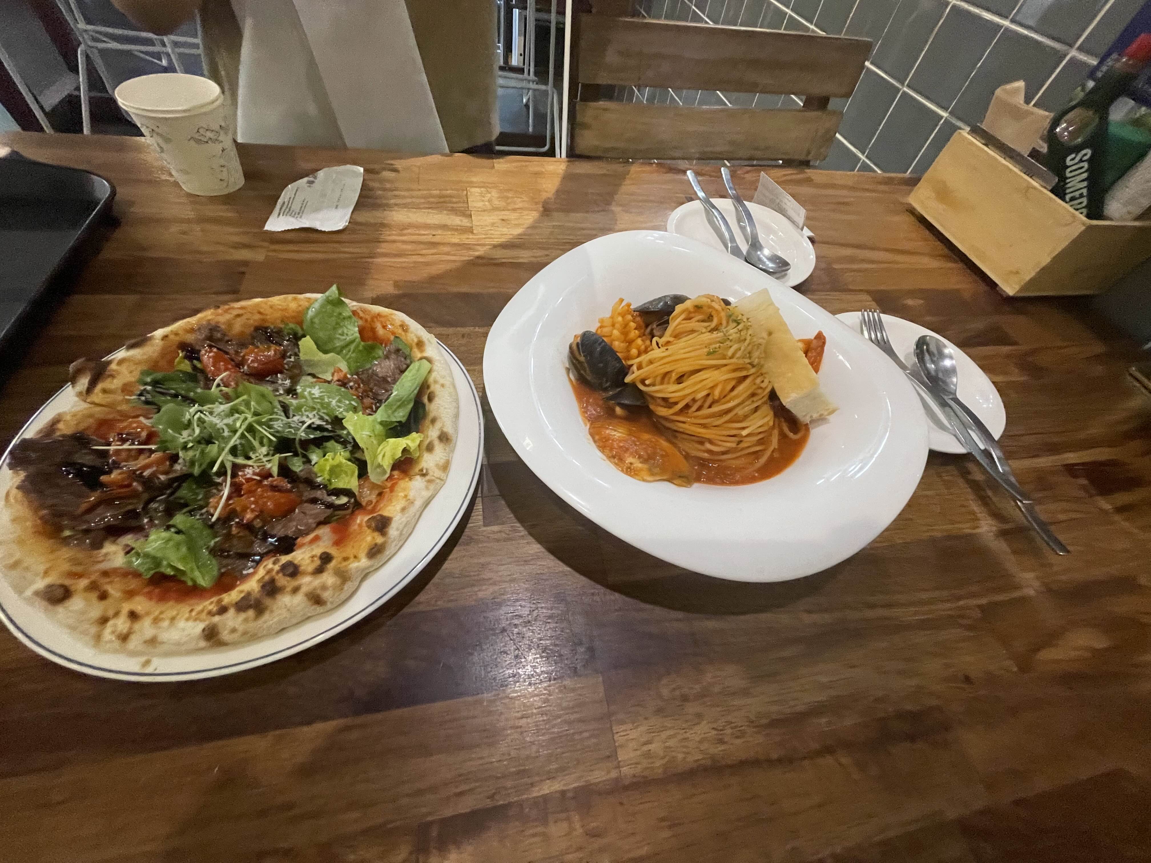 저는 처음에는 모르고 들어갔는데요. 피자는 화덕피자였습니다. 직접 화덕으로 구워주는 피자여서 정말 맛있었고 크기도 적당해서 너무 많지도 적지도 않아서 좋았어요. 스파게티는 그냥 그랬어요. 면을 너무 삶은 것 같은 느낌이 있었지만 양이 푸짐해서 좋았어요.