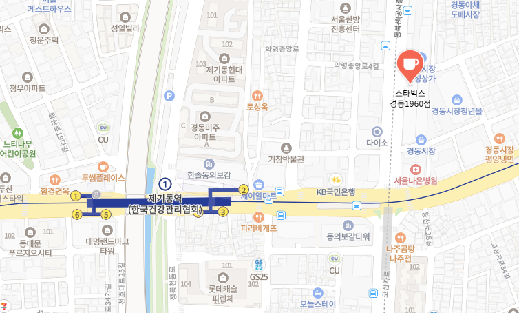 스타벅스 경동 1960 은 제기동역 경동시장에 위치해 있는데요. 저는 찾기가 조금 어렵더라고요.