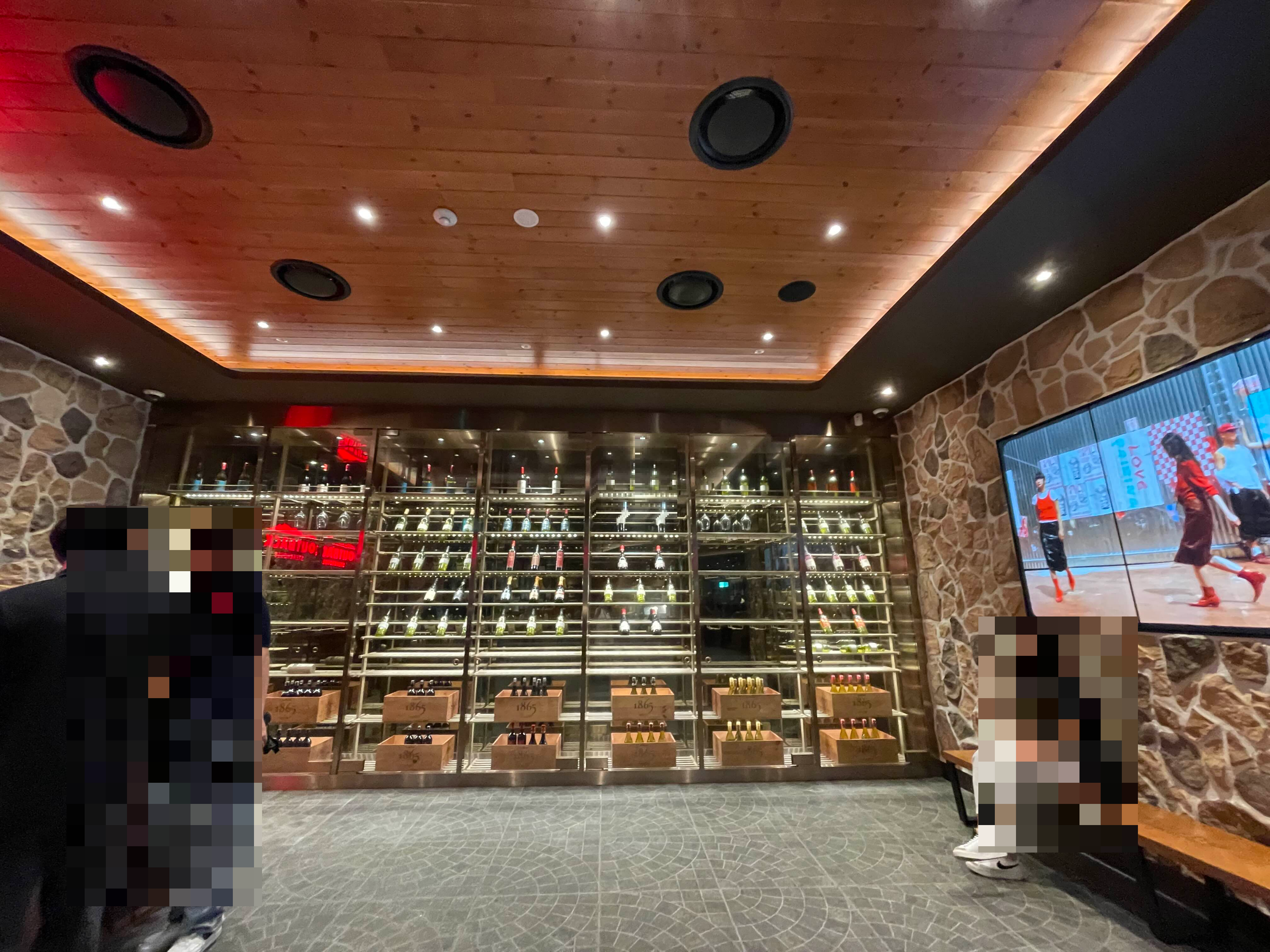 청량리역사 아웃백은 주말 저녁은 예약을 해야 하더라고요. 평일 저녁은 그나마 한가한 편이었어요. 입구에 들어서면 이렇게 커다란 스크린과 와인이 있는데요. 분위기는 좋은 것 같았어요.