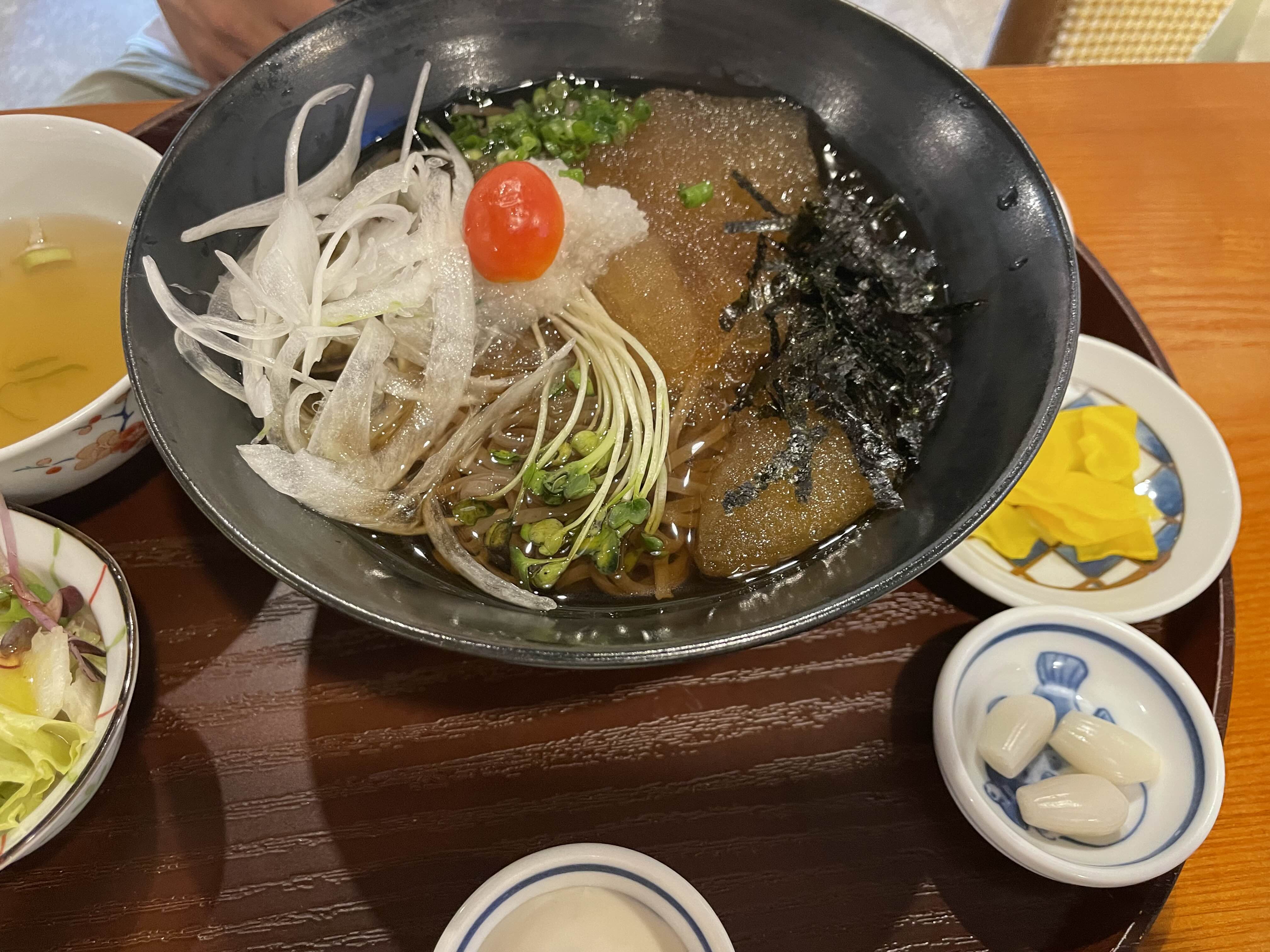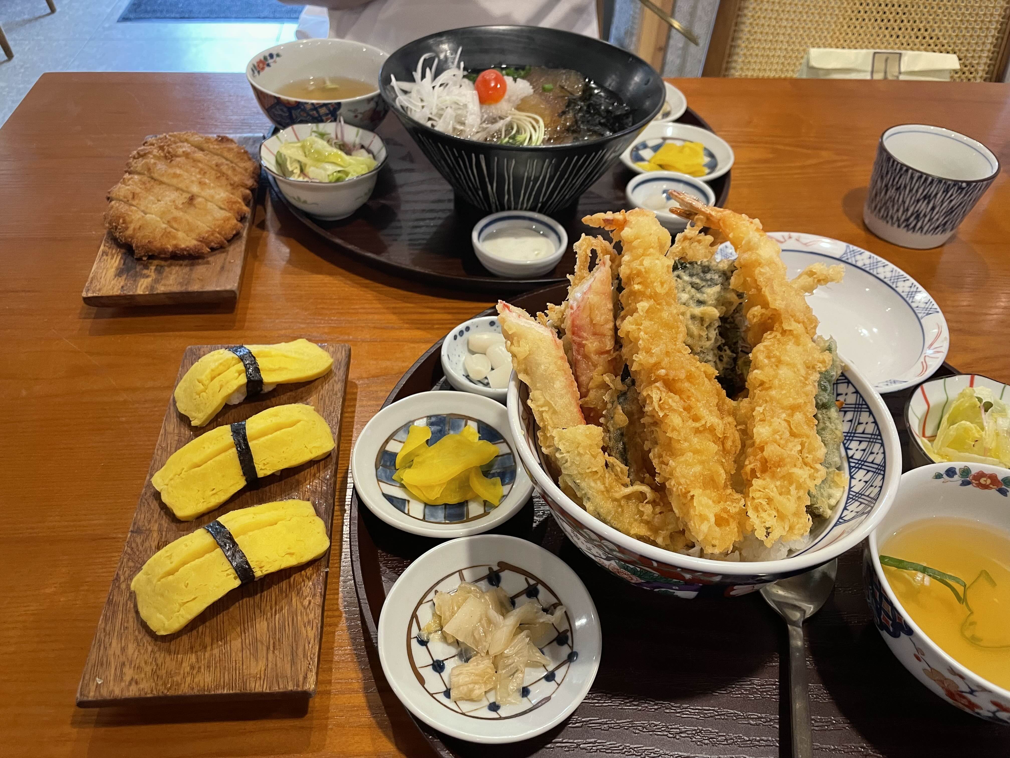 냉소바 돈가스 세트인데요. 냉소바는 정말 맛있었어요. 하지만 돈가스는 좀 미니로 나왔고 텐동만큼의 튀김옷도 없고 바삭하지도 않더라고요. 돈가스는 좀 그냥 그렇더라고요. 하지만 이것도 치히로만의 방식이겠죠?
