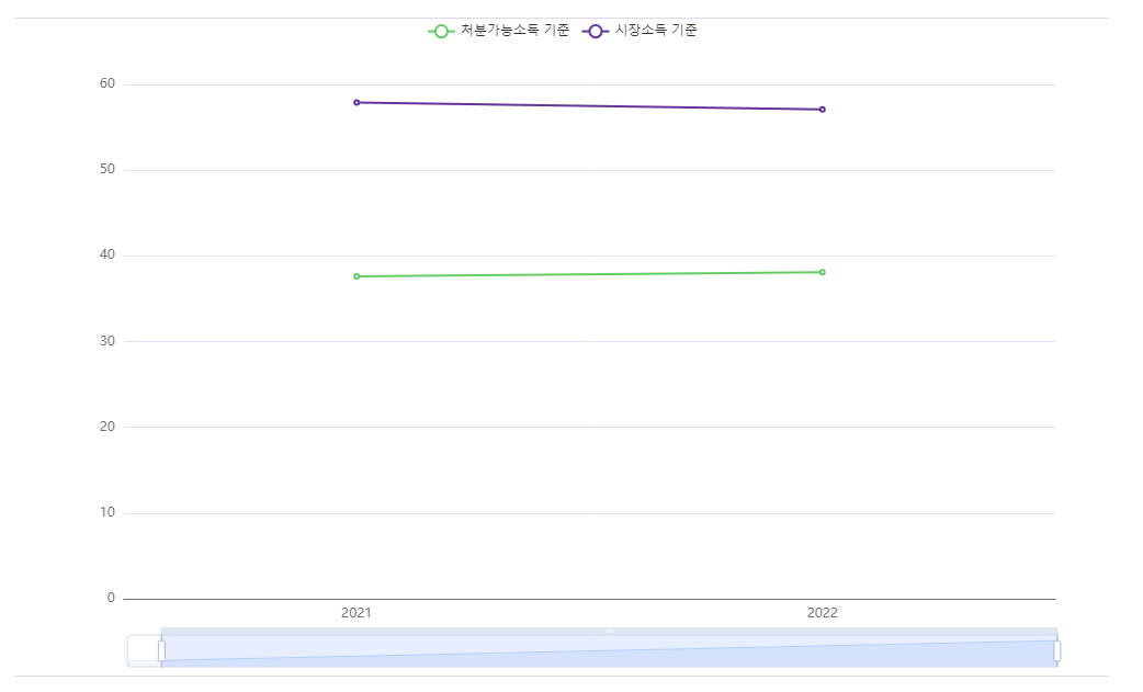 노인인구 상대적 빈곤율은 노인인구는 65세 이상 인구 중 소득 수준이 빈곤선(균등화 처분가능소득의 중위소득 50% 또는 60%) 이하인 인구가 차지하는 비율을 의미합니다.