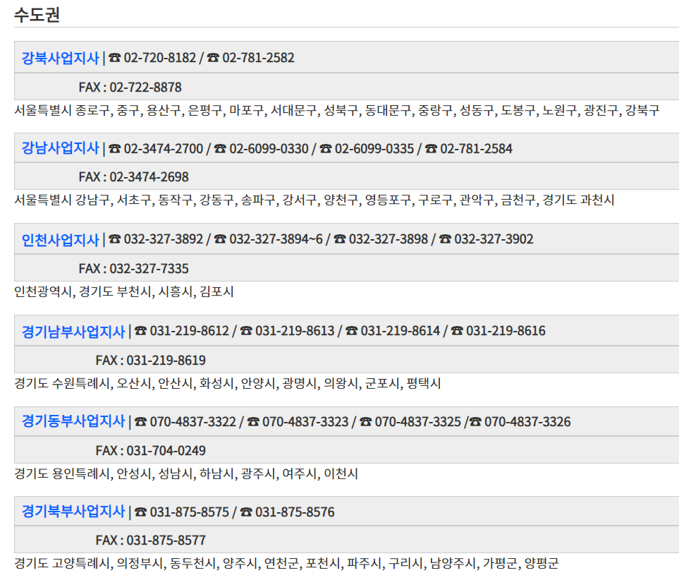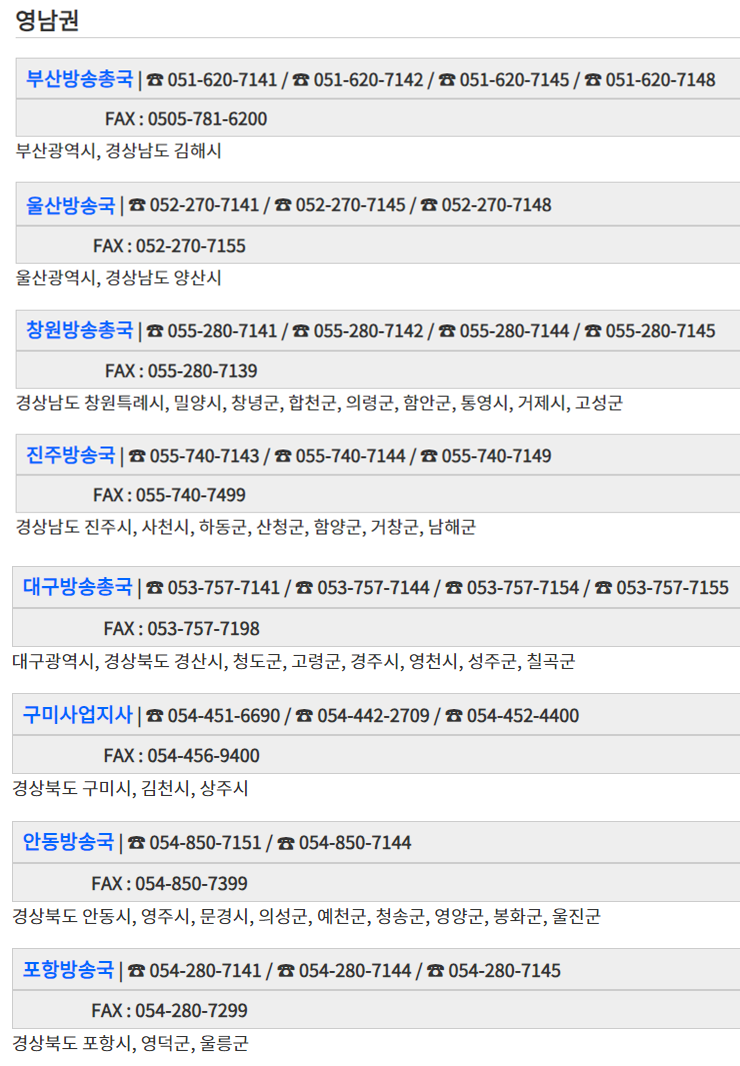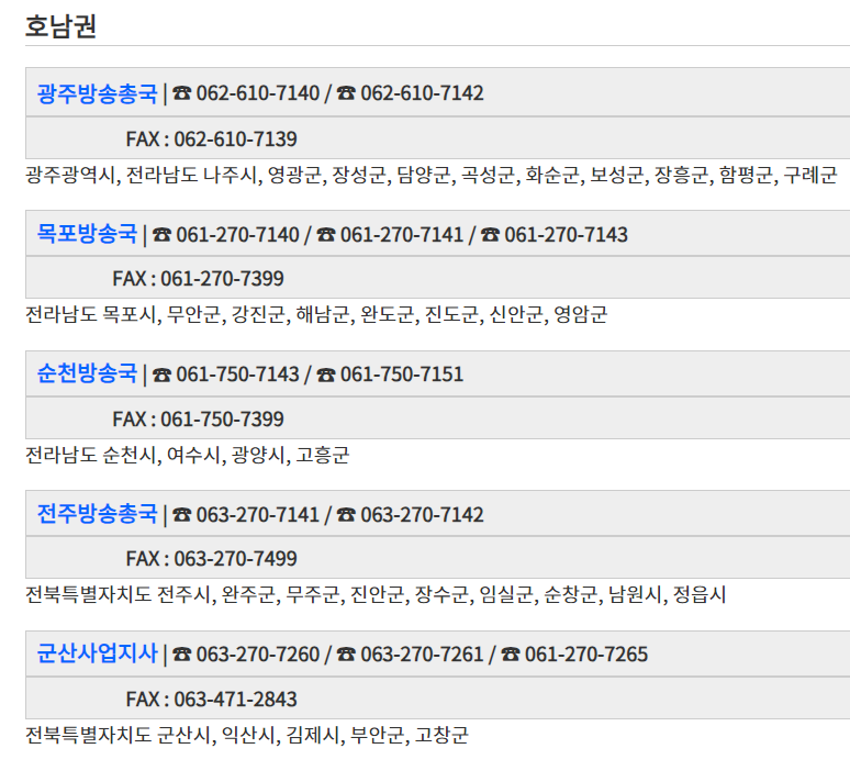 지역별 수신료 안내지사 전화번호
