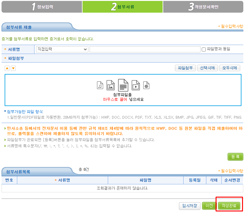 다음 작성완료 버튼을 누르고 제출하면 됩니다.