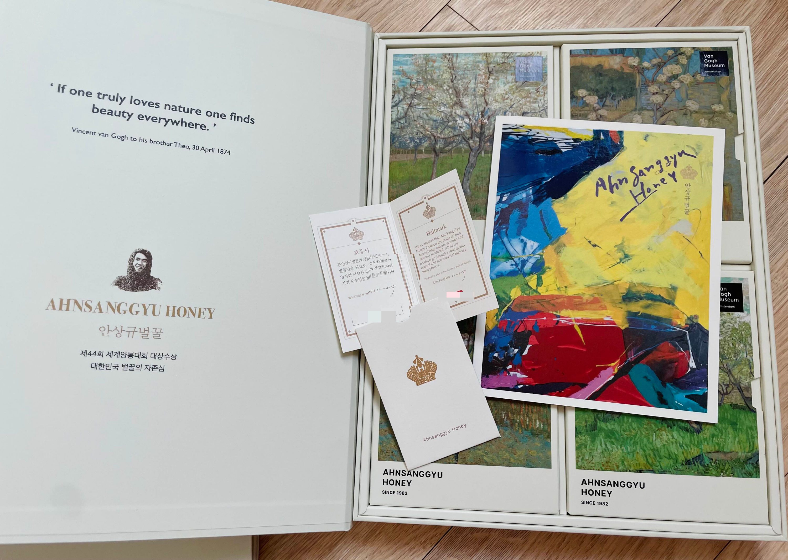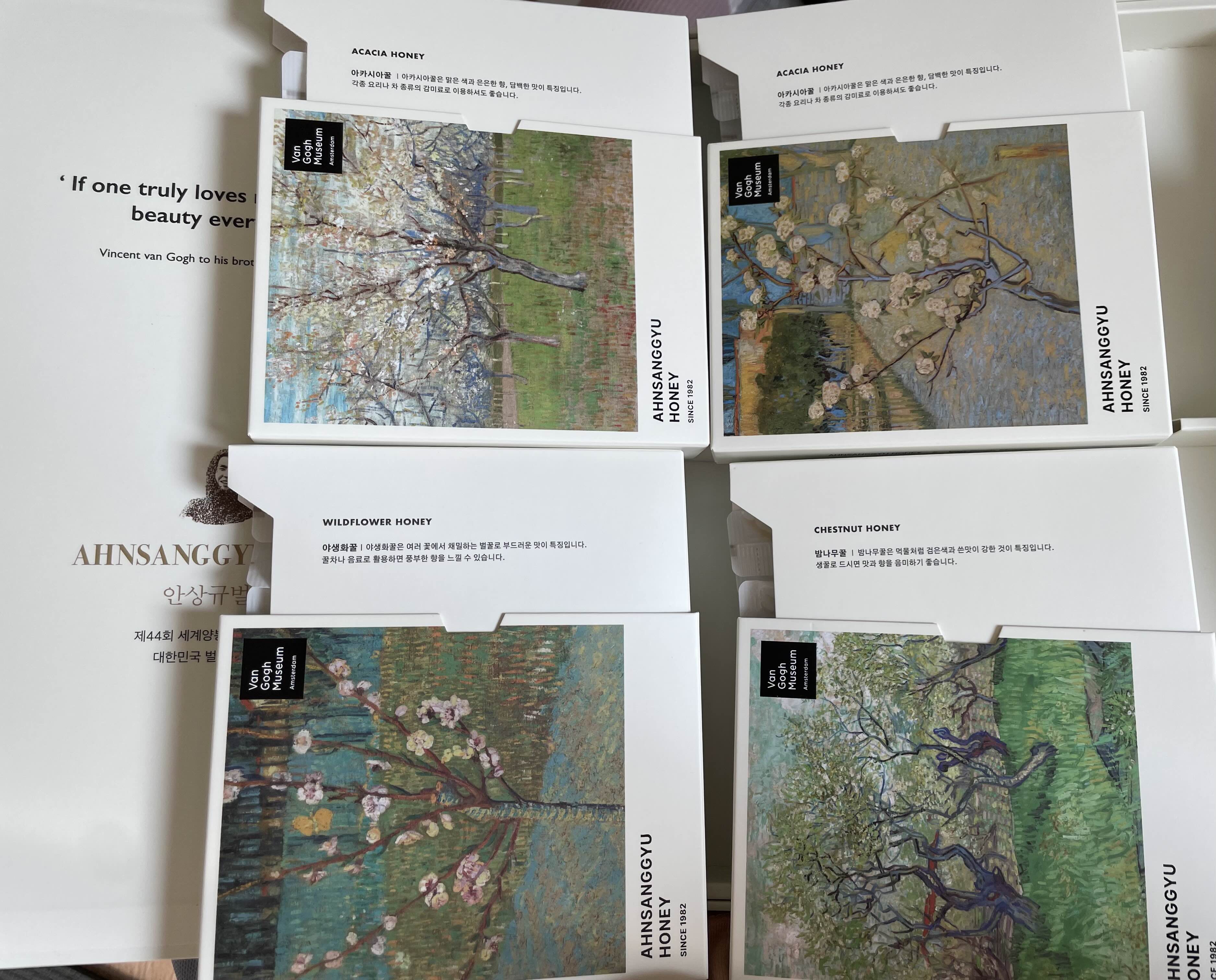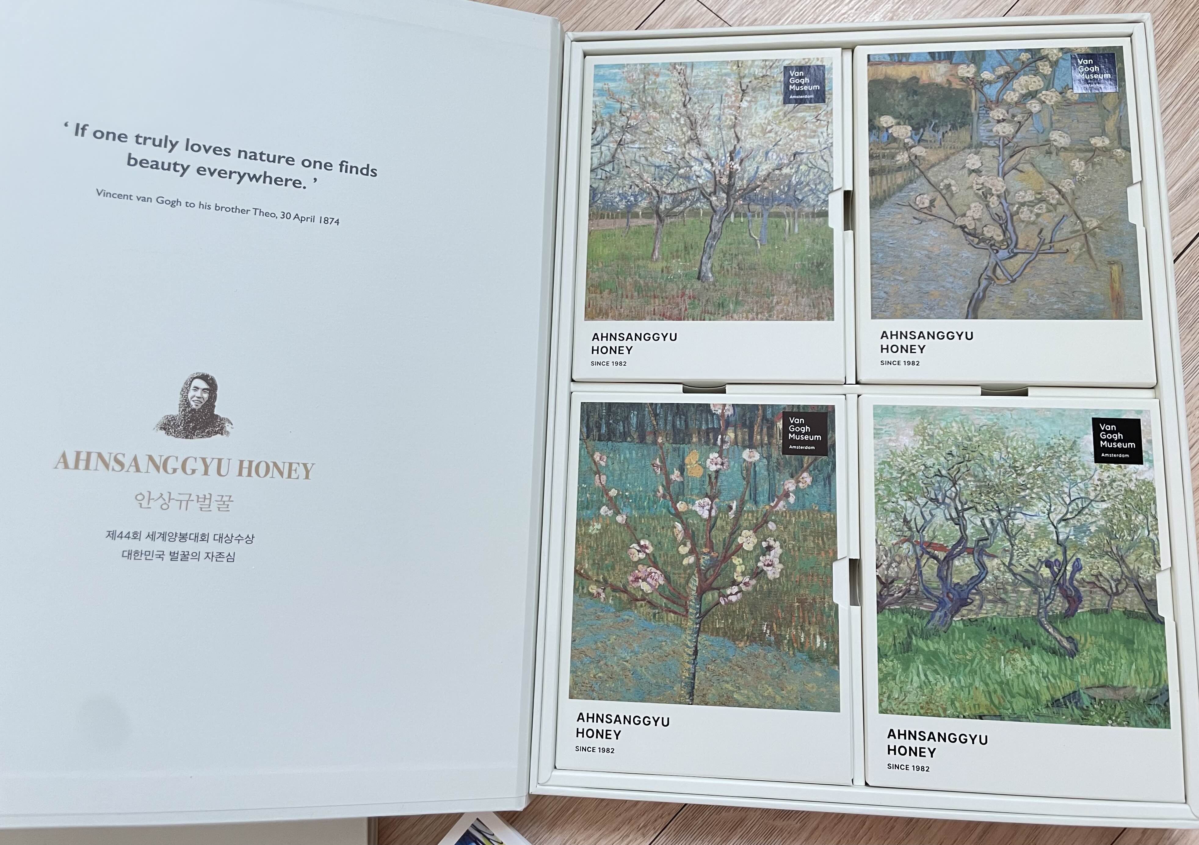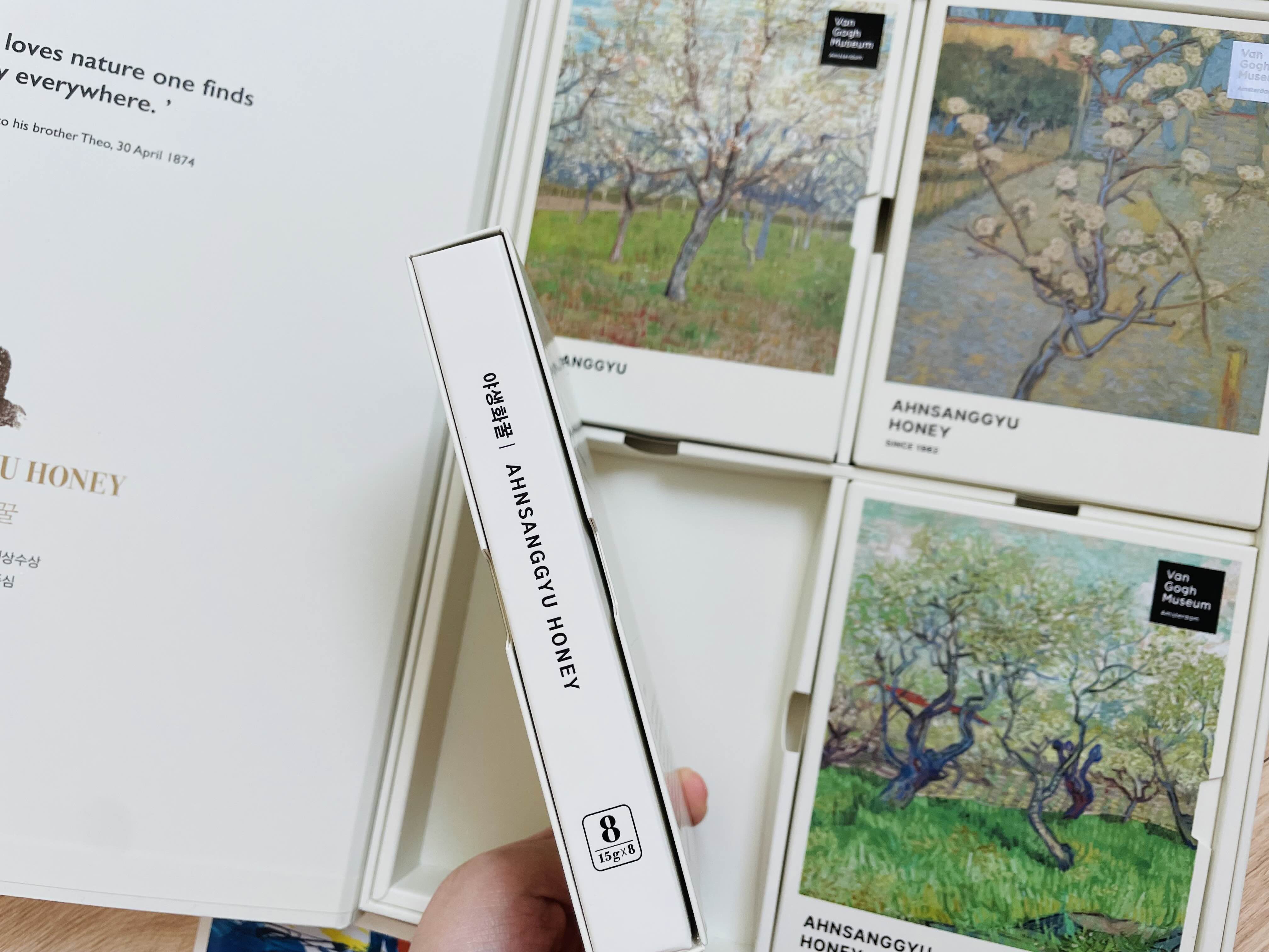 저는 안상규 벌꿀 세트를 택배로 받아보고 정말로 선물 받는 듯한 기분이 들어서 좋았는데요. 일단 반 고흐 전시도 가 보고 반 고흐에 대하여 어느 정도 이해하다 보니 이번 포장이 더 특별하게 느껴지는 것 같은데요.