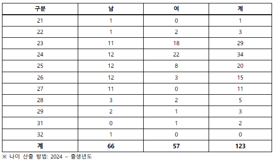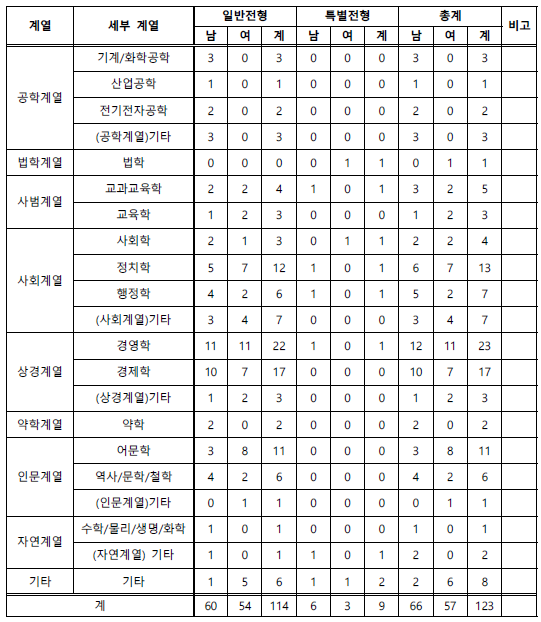 총 123명 = 입학정원(120)명 + 결원충원 (3) 명
