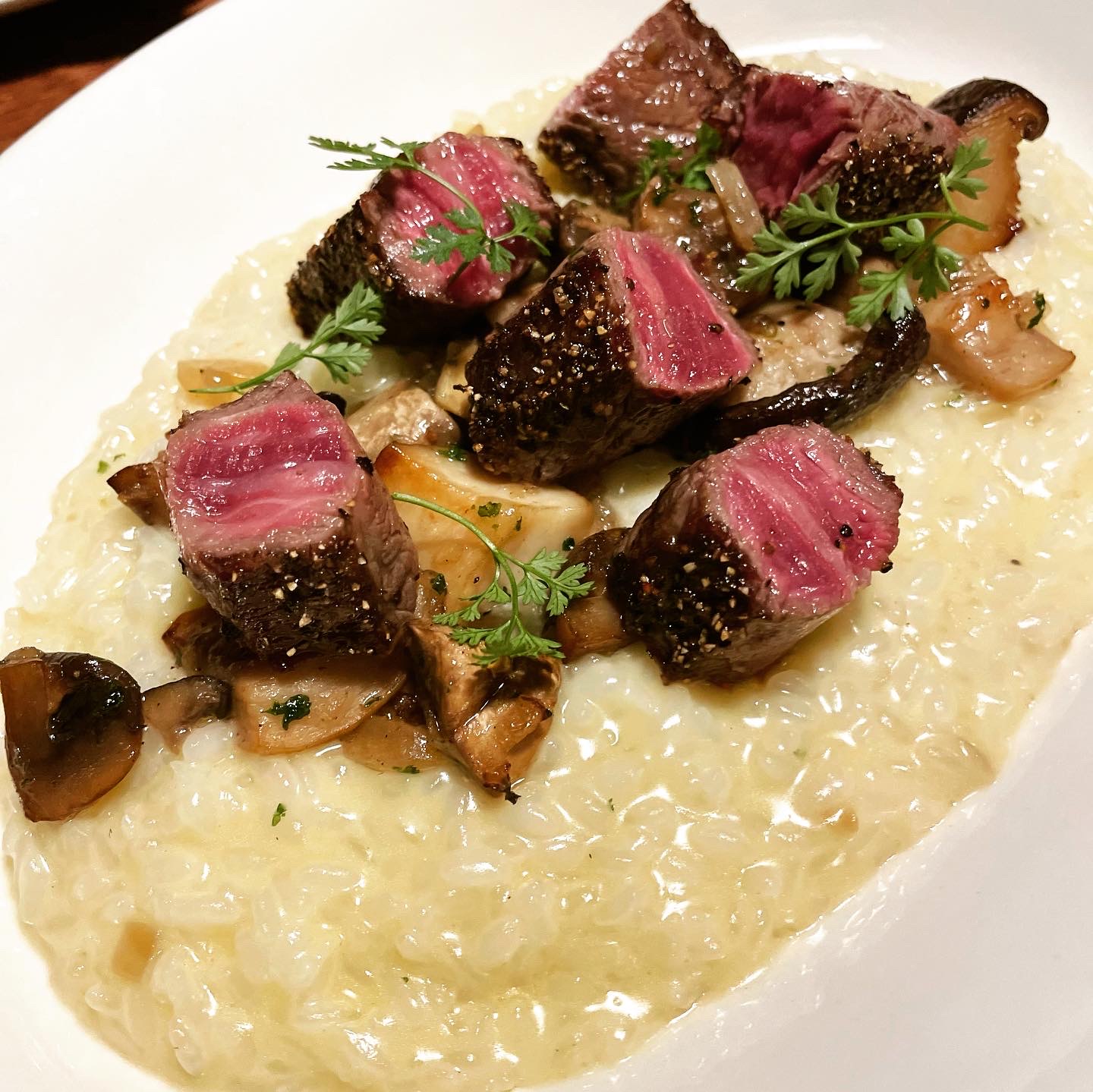 리조또는 부드러웠고 스테이크는 맛은 기억이 나지 않네요. 너무 부드럽지는 않았던 것 같아요. 하지만 머쉬룸이랑 리조또는 맛있었어요.