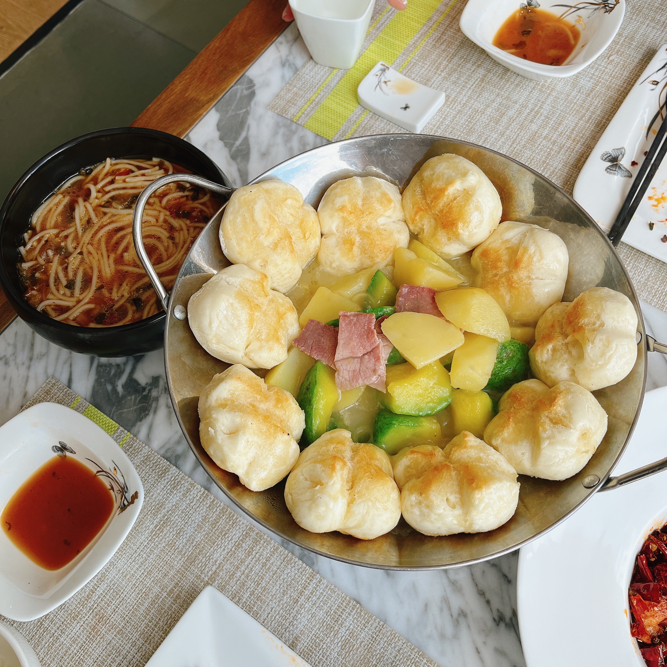 도착해서 처음 먹은 호텔 메뉴인데요. only 지역 메뉴이고 민족 메뉴라고 해서 먹었는데 이렇게 맛있어도 되나요??? 팬 주변에 두른 만두는 안에 소가 없는데도 너무 맛있어서 혼자서 반은 다 먹었어요. 가운데 야채는 감자랑 베이컨 외에 초록색은 Hami Melon이라고 합니다. 과일이 어떻게 감자랑 베이컨이랑 있지 맛이 없는 거 아니야 하는 생각으로 맛을 보았는데요. 아니, 이건 반칙 아닙니까.! 과일도 야채랑 같이 있으니 너무 맛있었어요. 이 메뉴는 여행 내내 계속 생각나던 메뉴였어요.