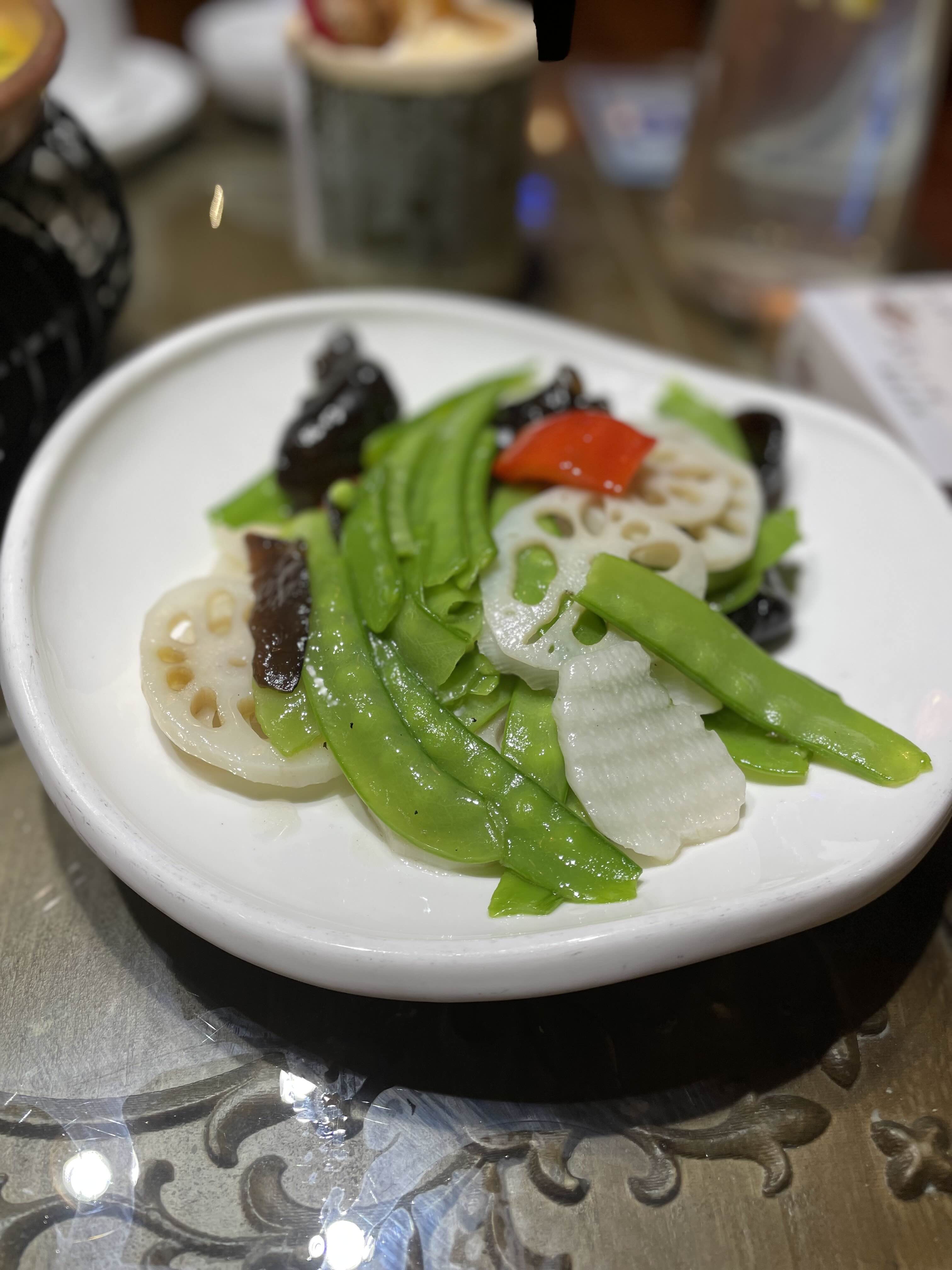 연근, 목이버섯, 완두콩, 마 볶음