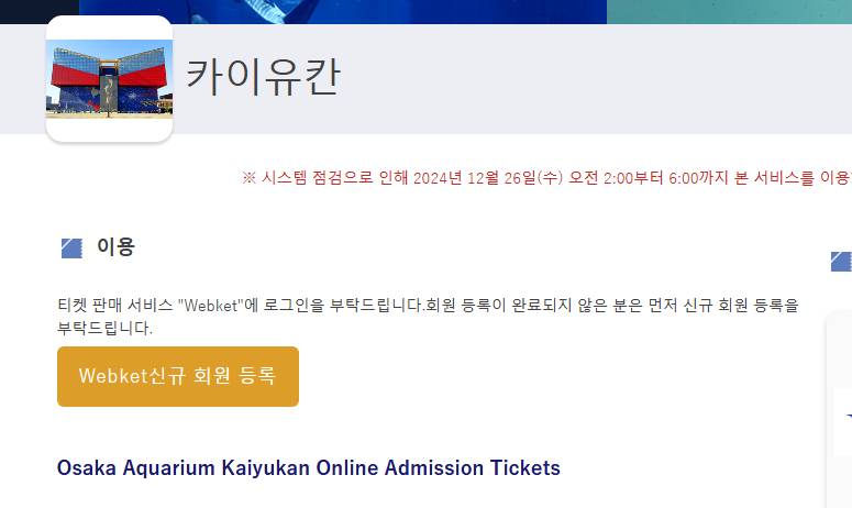 오사카 해유관 온라인 티켓 구매 방법