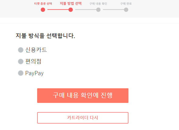 지불 방식에는 신용카드, 편의점, 페이페이가 있는데요. 편의점을 선택하시면 일본에 도착해서 아무 편의점에 가서 지불하면 됩니다. 다만, 편의점 선택을 하게 되시면 일정이 변경 있을 때는 변경이 어렵다고 합니다.