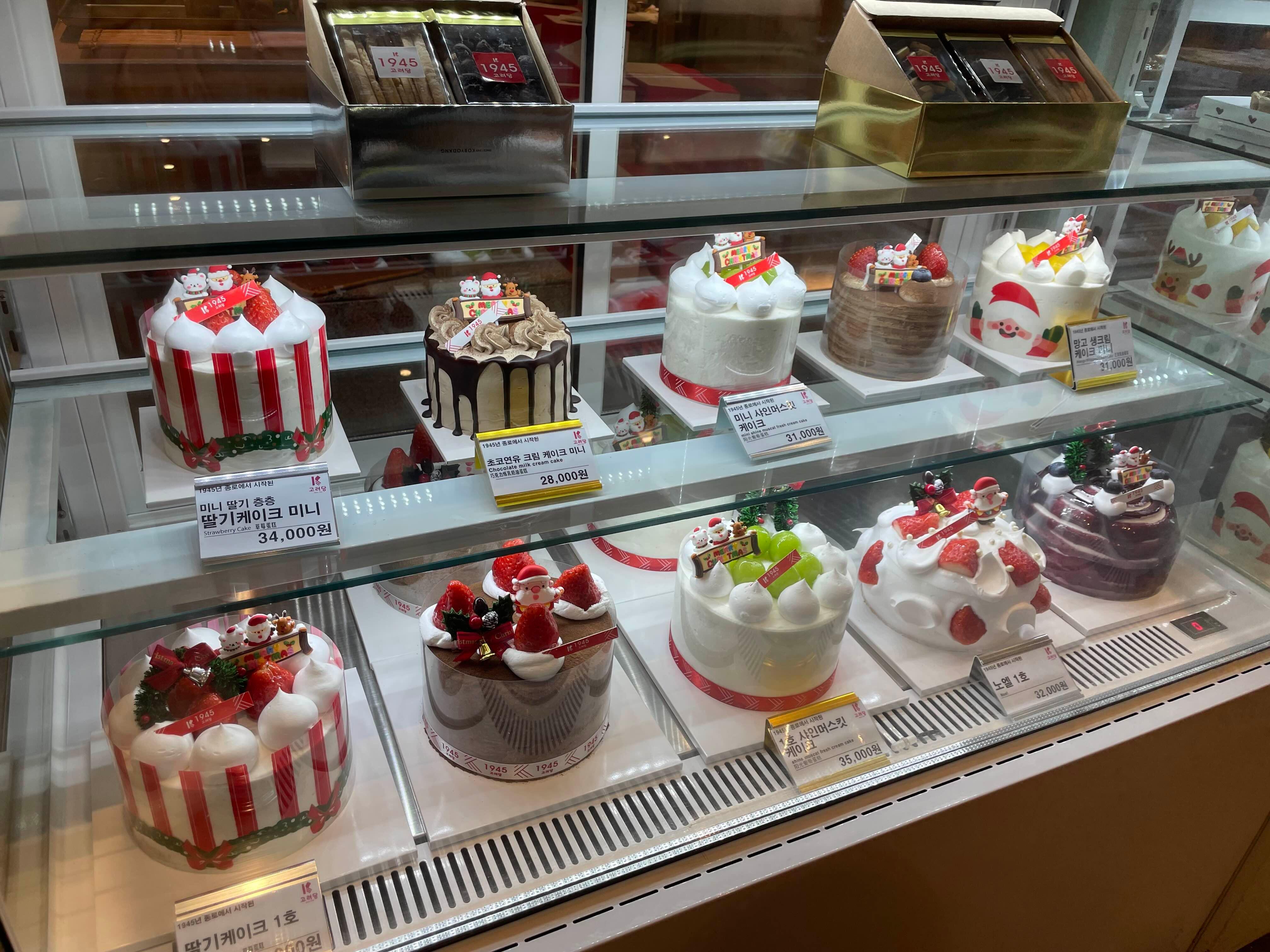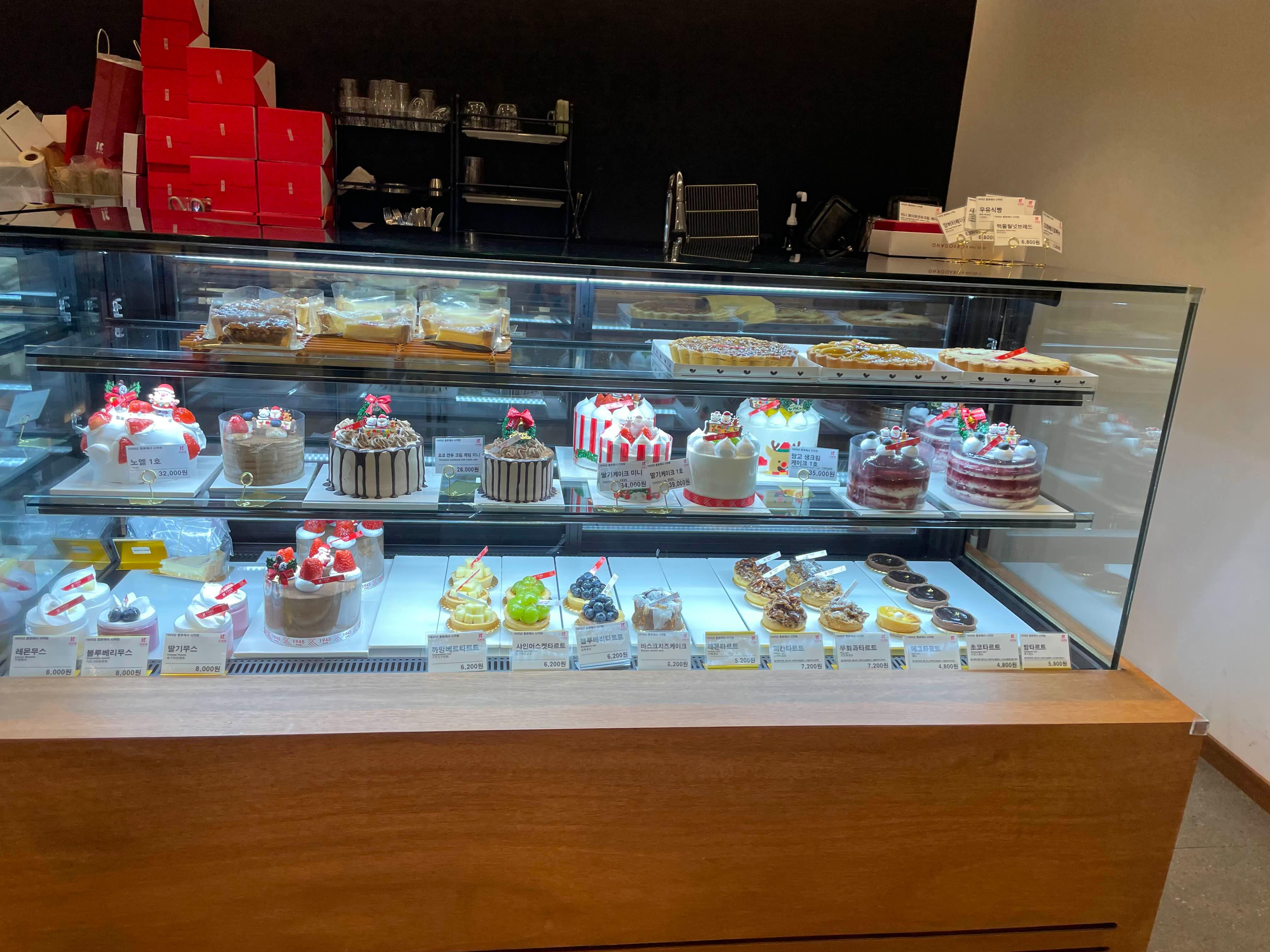 케이크도 있었는데 크리스마스 시즌 케이크가 많이 나온 것 같더라고요. 그리고 입구 쪽에 케이크 데스크가 따로 있는데 거기서 케이크를 편하게 주문할 수 있어서 좋은 것 같았어요.