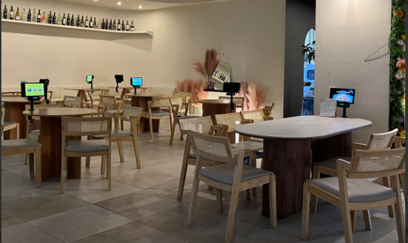 주문의 테이블마다 키오스크가 있는데 키오스크로 주문하면 되는데요. 저희가 갔을 때는 5인석이랑 작은 2인석이 남았는데 2인석에 의자하나 가져와서 셋이 앉았어요. 저희가 앉은자리는 키오스크가 없어서 카운터 가서 태블릿 챙겨 와서 주문하게 되었어요. 그리고 카운터 옆에 배달 전문 키오스크가 있는데 메뉴가 조금 달라서 매장에서 드시는 거면 배달 전문 키오스크 사용하면 안 된다고 하더라고요.