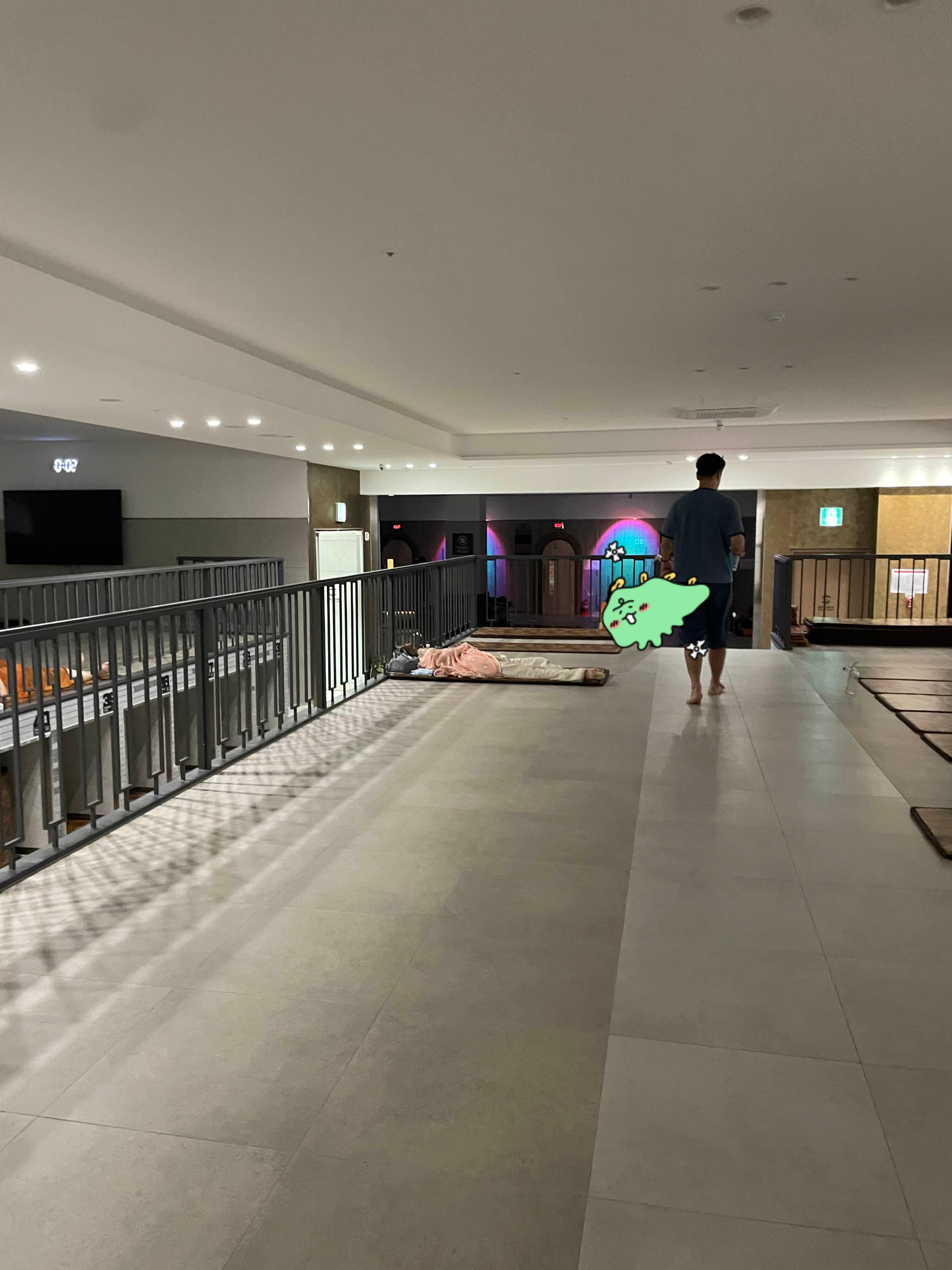 다른 분들은 수면 잠옷을 입고 위에 찜질방 옷을 입거나 위에 재킷을 입고 내부에서 다니시더라고요. 바닥도 따뜻하다기보다 미지근해서 찜질방의 따뜻함을 느끼지 못했어요.