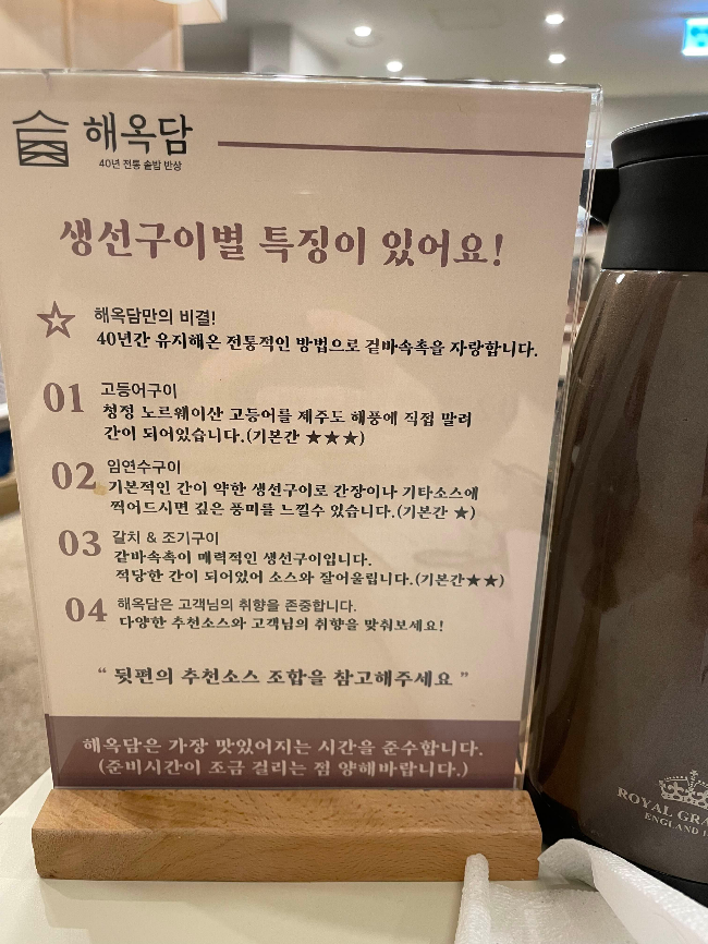 생선구이 맛집답게 생선구이별 안내 문구가 있었는데요. 다음에는 생선구이로 도전해 볼 생각입니다.
