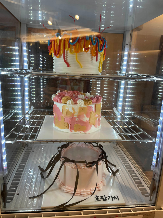 호랑가시 케이크도 있는데요. 홀케이크는 예약을 해야 하더라고요. 가격은 5만 원대였던 것 같네요. 그런데 케이크가 너무 예뻐서 비싸도 살 것 같아요.