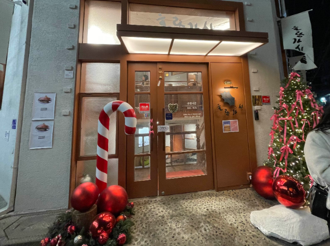 겉모습은 2월이었지만 아직도 겨울의 분위기를 계속 내고 있었는데요. 연말의 분위기이지만 우드톤의 문과 연말 분위기가 너무 예쁘게 어우러져있는 것 같더라고요.