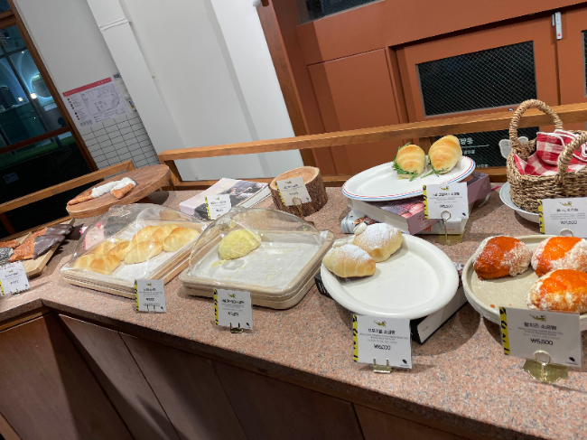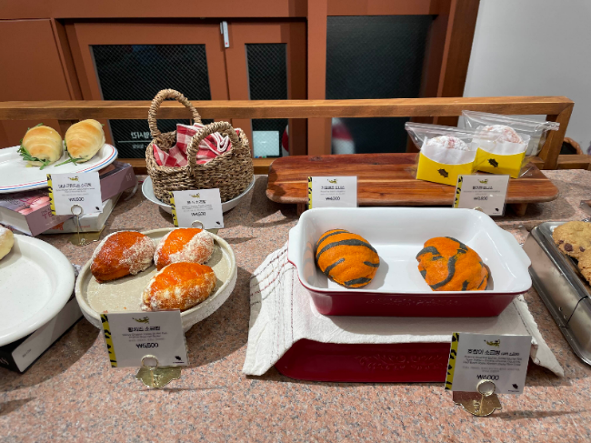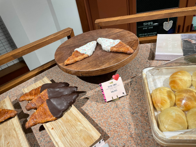 호랑가시의 시그니처인 호랑가시 소금빵 구매했어요. 위에는 쿠키맛이고 속은 팥이 들어가 있어서 별미예요. 가격은 6000원이었어요. ㅠㅠ. 소금빵 하나에 보통 3500원 하는데 쿠키랑 팥 들어간 것 생각하면 비슷한 것 같기도 하고요.