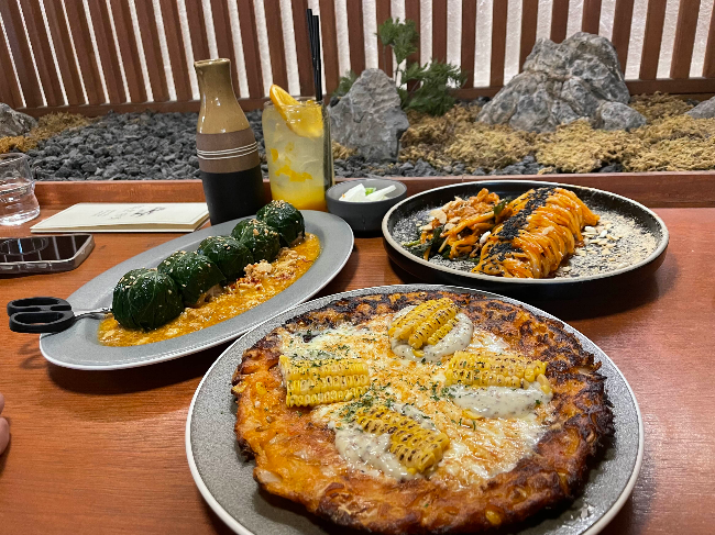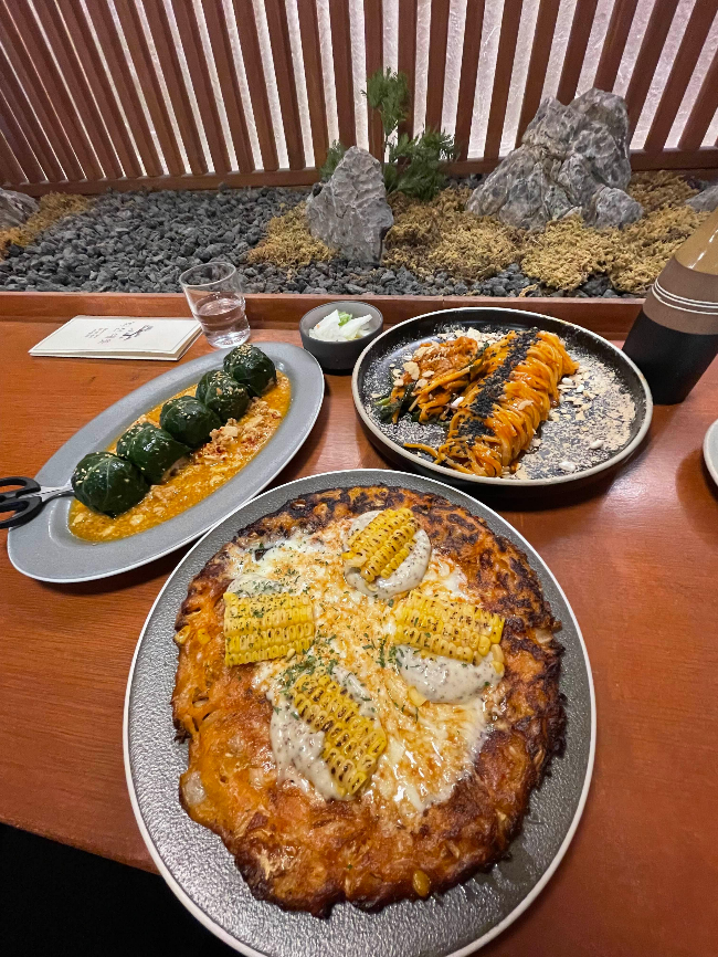 익선애뜻의 시그니처 메뉴를 주문해 보았는데요. 이번에 주문한 메뉴는 강된장 쌈밥이랑, 칼국수면, 그리고 김치전을 주문했는데요. 김치전은 매번 빠지지 않는 메뉴였어요. 엣지는 바삭하고 속은 촉촉, 그리고 치즈랑 옥수수까지 먹고 돌아서면 항상 생각나는 김치전이에요.