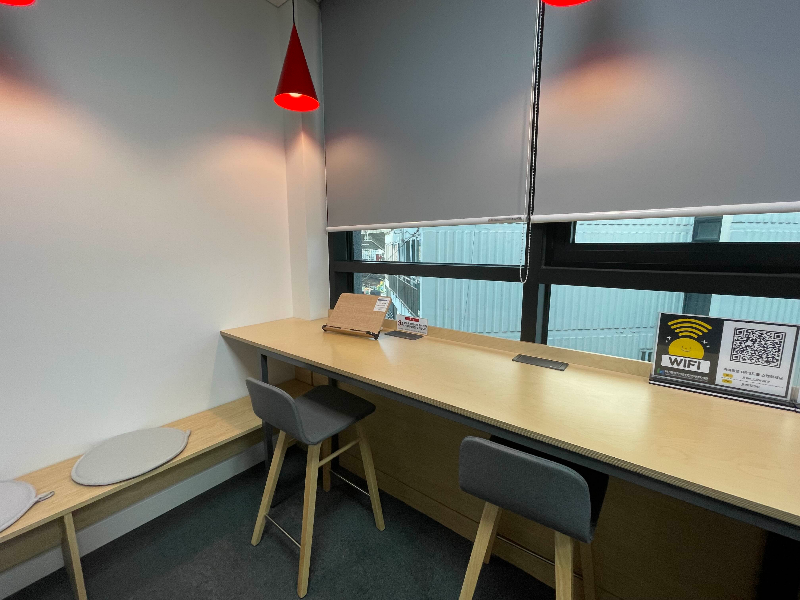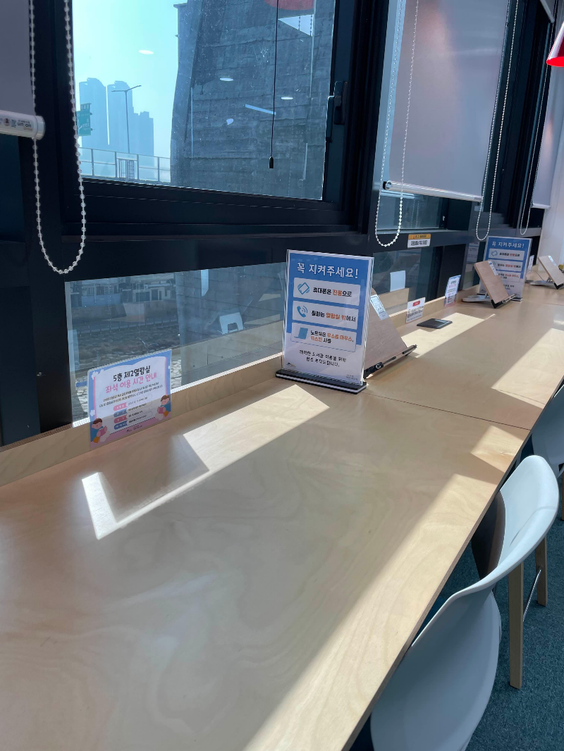 여기는 4층 공간입니다. 확실히 층고가 조금 낮아서 그런지 5층보다는 해다 덜 드는 것 같더라고요. 블라인드를 내려서 그런지는 모르겠지만 5층보다는 쾌적하다는 느낌이 없었어요. 5층에서 계속 이용하고 싶었지만 안내 문구대로 12시 땡 하고 4층으로 내려왔답니다.