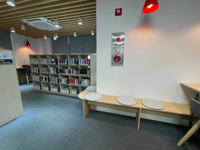 4층 공간에 조그맣게 쉴 수 있는 공간인데요. 여기는 좀 많이 춥더라고요. 그리고 5층은 좀 따뜻하고 4층은 좀 추운 것 같았어요. 아마 이용하는 사람들이 좀 있다 보니 에어컨을 켠 것 같더라고요.