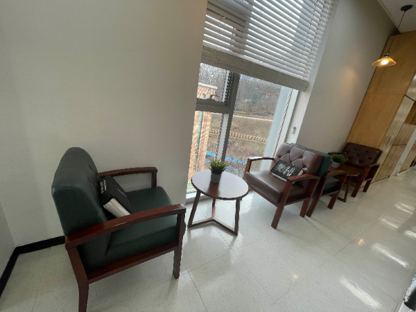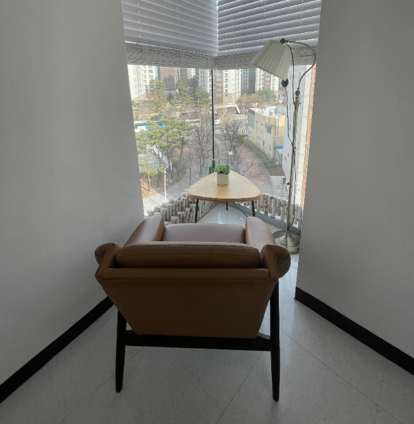 이 공간은 독서를 한다면 정말 좋은 자리인 것 같지만 소파가 어딘가 불편해 보이는 것 같기도 하네요. 명상이랑 독서 너무 좋을 것 같아요. 이날은 이 자리를 이용하는 분은 없더라고요.