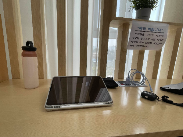 새 건물이라 그런지 자리도 너무 깨끗하고 카페 같은 분위기더라고요. 공부도 더 잘 되는 것 같았어요. 도서관 이용하시는 분들 꽤 많아서 제가 앉은 줄은 한 명씩 모두 차지하고 있었어요.