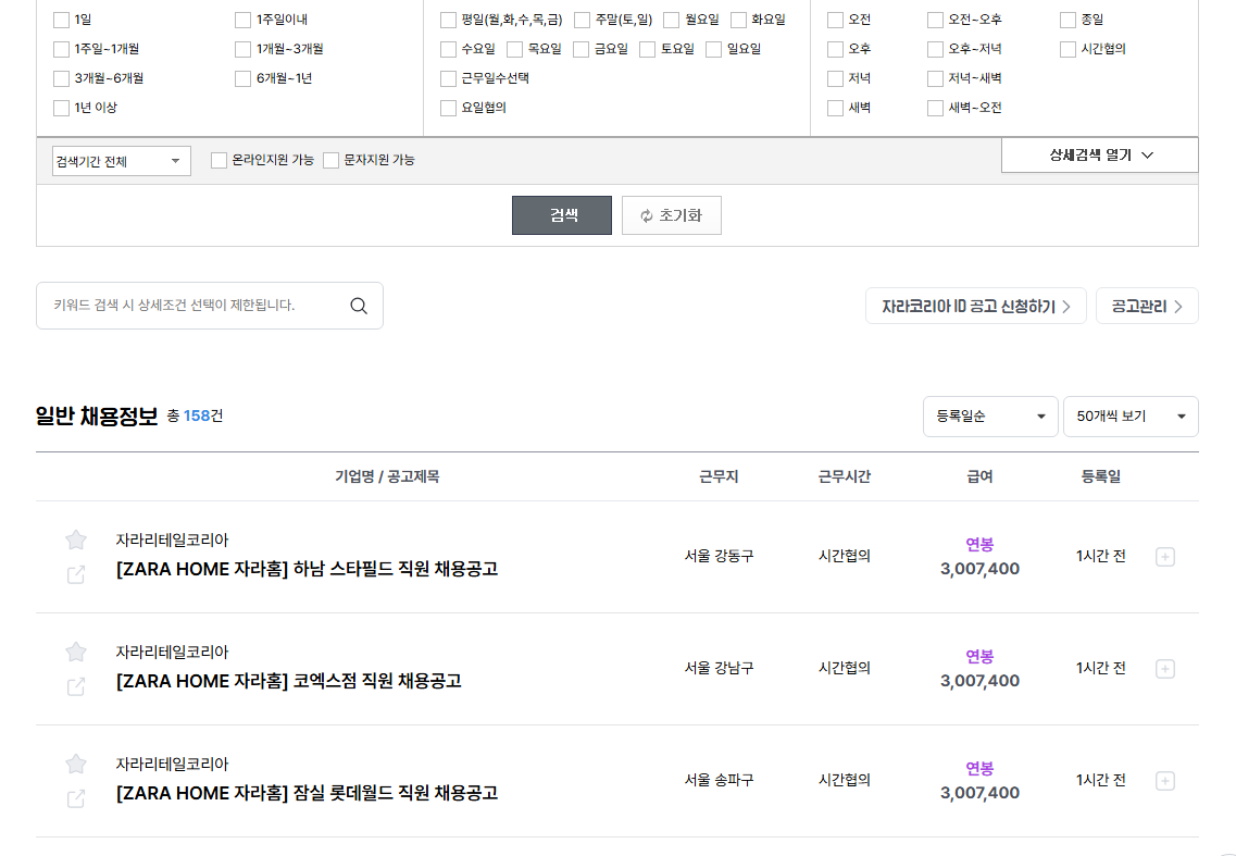 자라 파트타이머 지원 방법