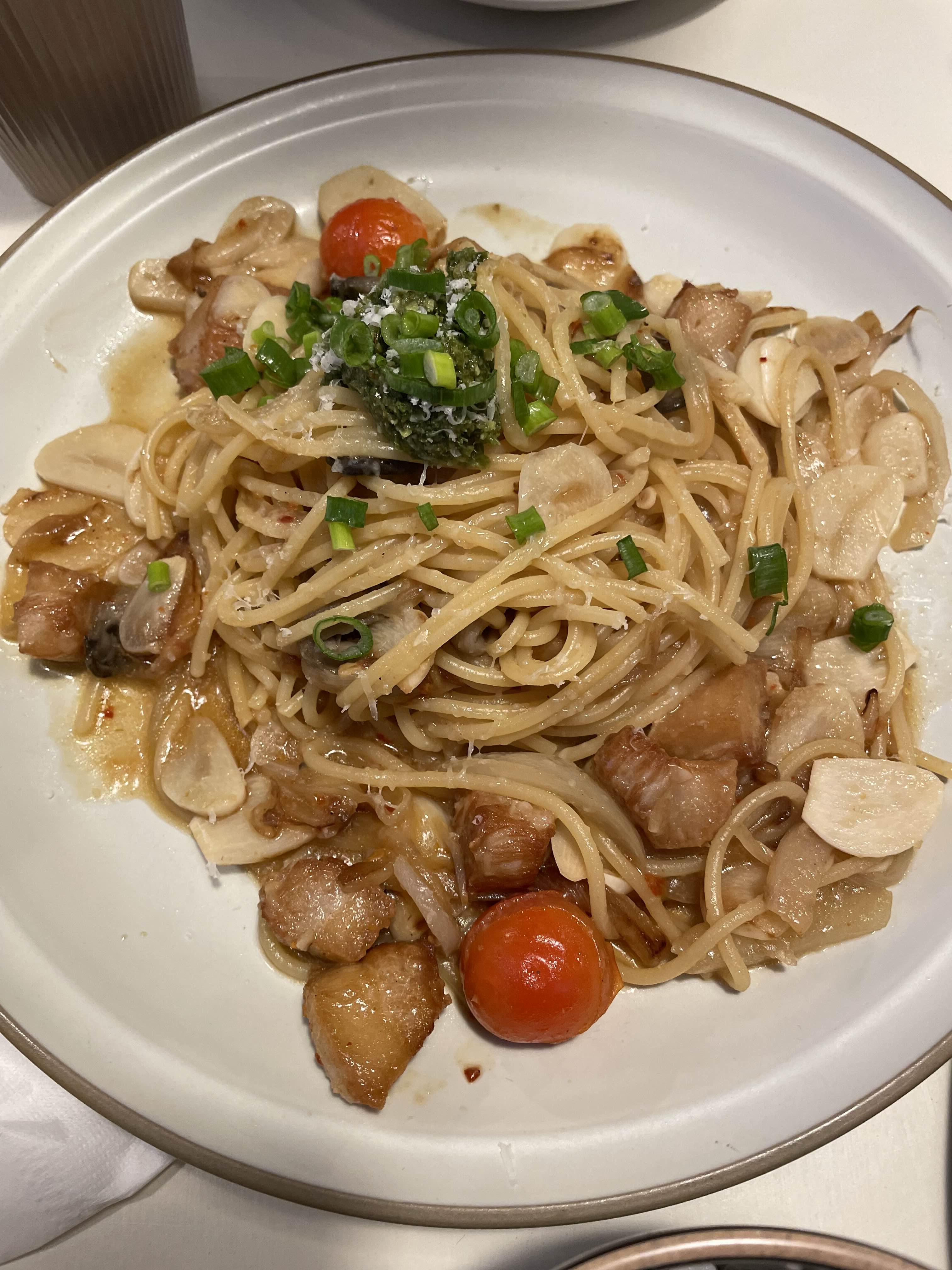 항정살 스파게티라고 하는데요. 솔직히 배고파서 허겁지겁 먹었지만 맛집이라고 할 정도는 아닌 것 같아요.