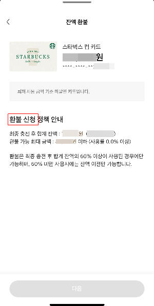스타벅스 카드 환불