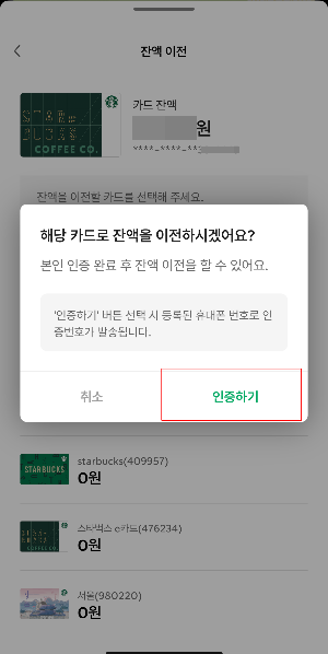 스타벅스 카드 잔액 합치기