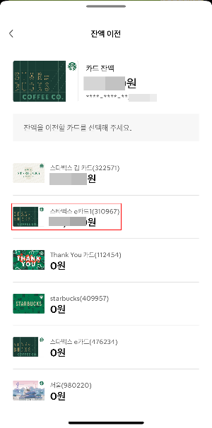 스타벅스 카드 잔액 합치는 방법