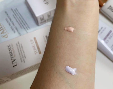양을 소량으로 해서 그런지 처음에 도포로 발랐을 때 핑크보다 퍼플이 조금 더 톤업되는 것 같더라고요. 한 번 발랐는데 끈적임이 없고 번들거리지 않아서 좋았어요.