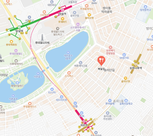 방이동 팔각도 위치 잠실역에서는 10번출구로 나가면 빠른데요. 2호선타고 내리셨다면 10번 출구로는 거리가 꽤나 있으니 버스타고 이동하는 것이 가장 편할 것 같더라고요. 방이동 먹자골목