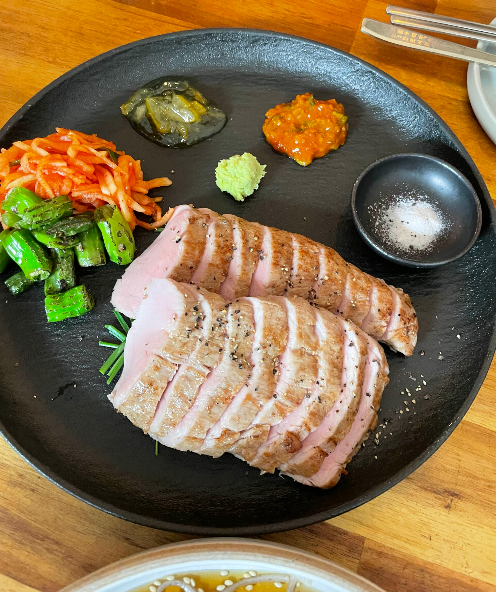 이건 수육인데요. 수육 고기는 정말 부드럽고 옆에 곁들인 소스는 유자 소스인데 소스와 수육의 궁합도 좋았던 것 같아요.