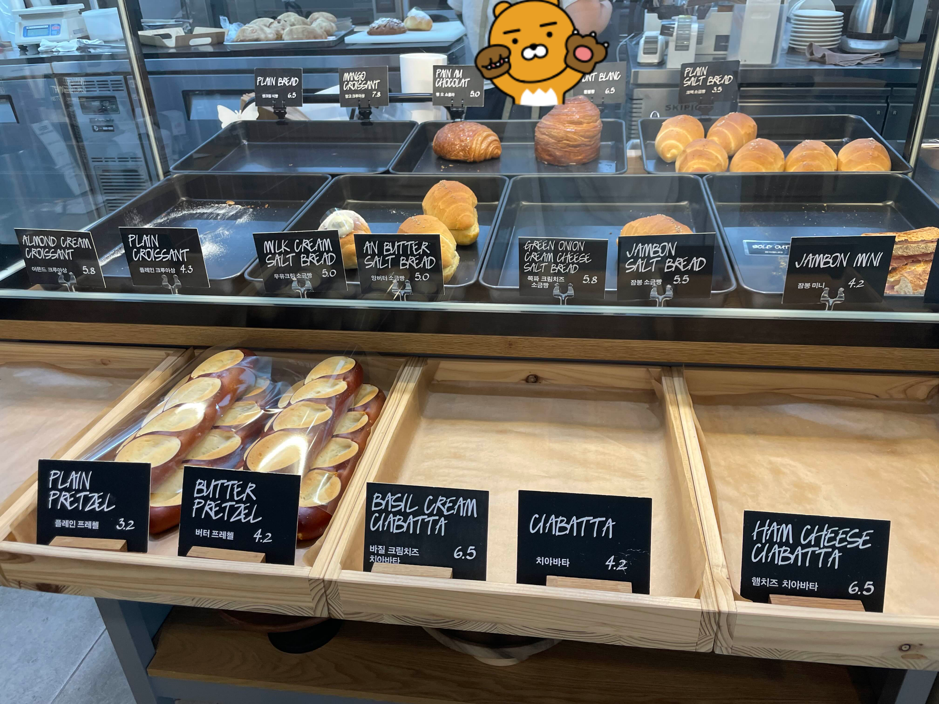 저의 최애 픽은 우유크림소금빵이랑 아몬드크루아상인데요. 매번 갈 때마다 아몬드크루아상은 한 개만 남아 있거나 아예 없어서 조금 아쉽더라고요.