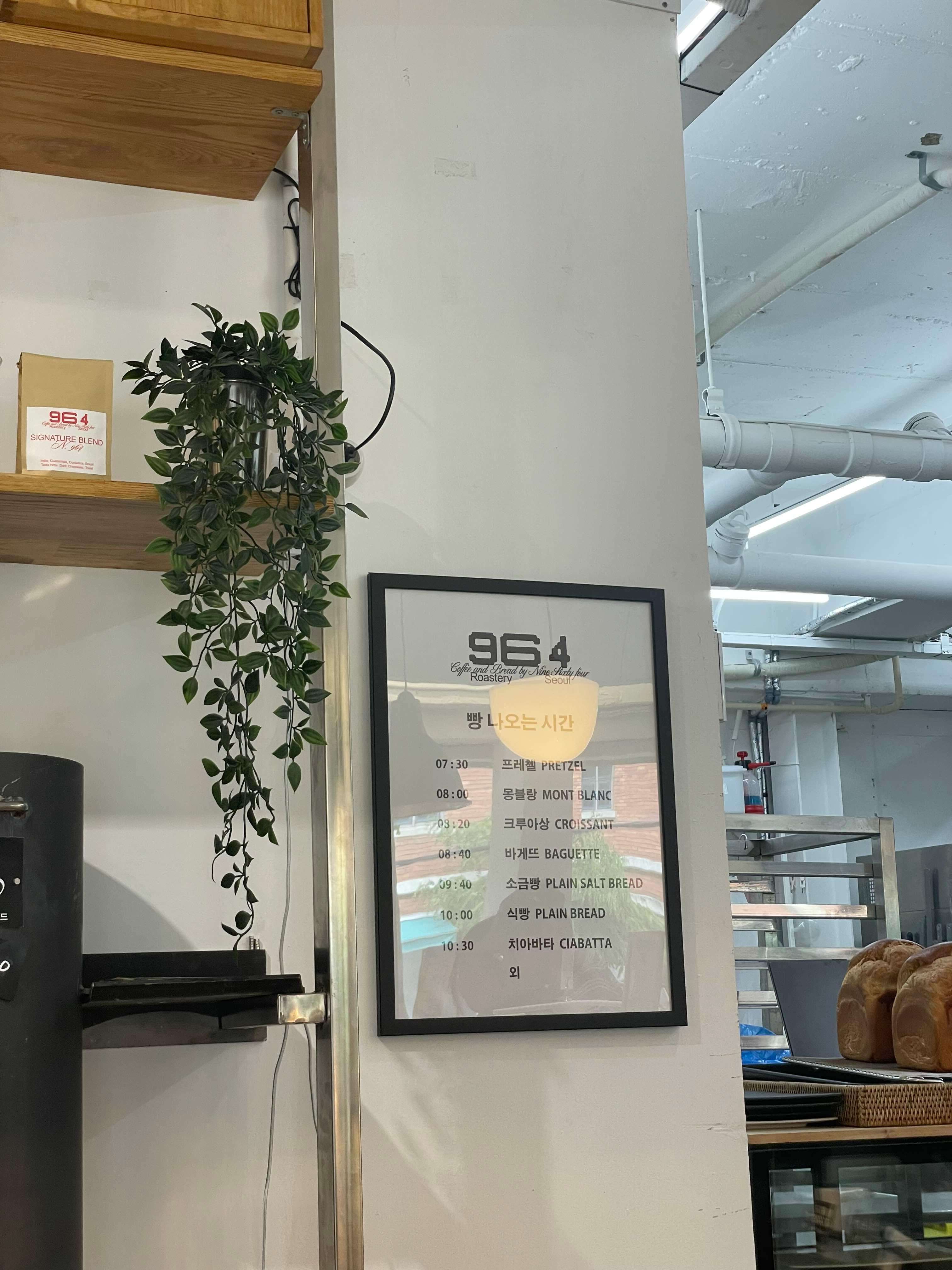 964 커피 로스터리 가장 좋은 점은 아침 일찍 오픈한다는 것인데요. 베이커리가 맛있기도 한 데다 아침 일찍 출근길에서도 먹을 수 있어 좋은 것 같아요. 그리고 시간대별로 베이커리 나오는 종류가 다 달라서 기다리는 맛도 있더라고요.
