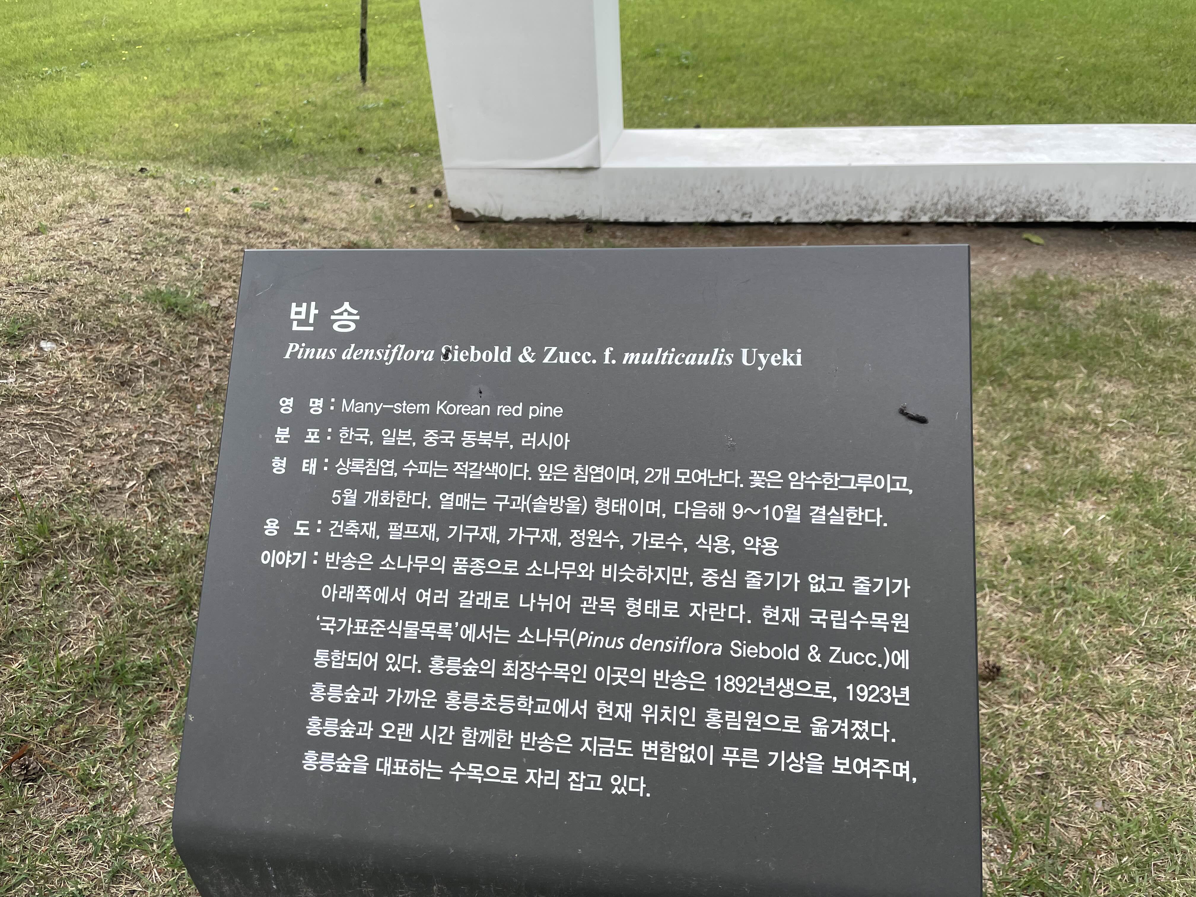 반송이라는 이름을 가지 소나무인데요. 홍릉숲에서 최장수목이라고 합니다.