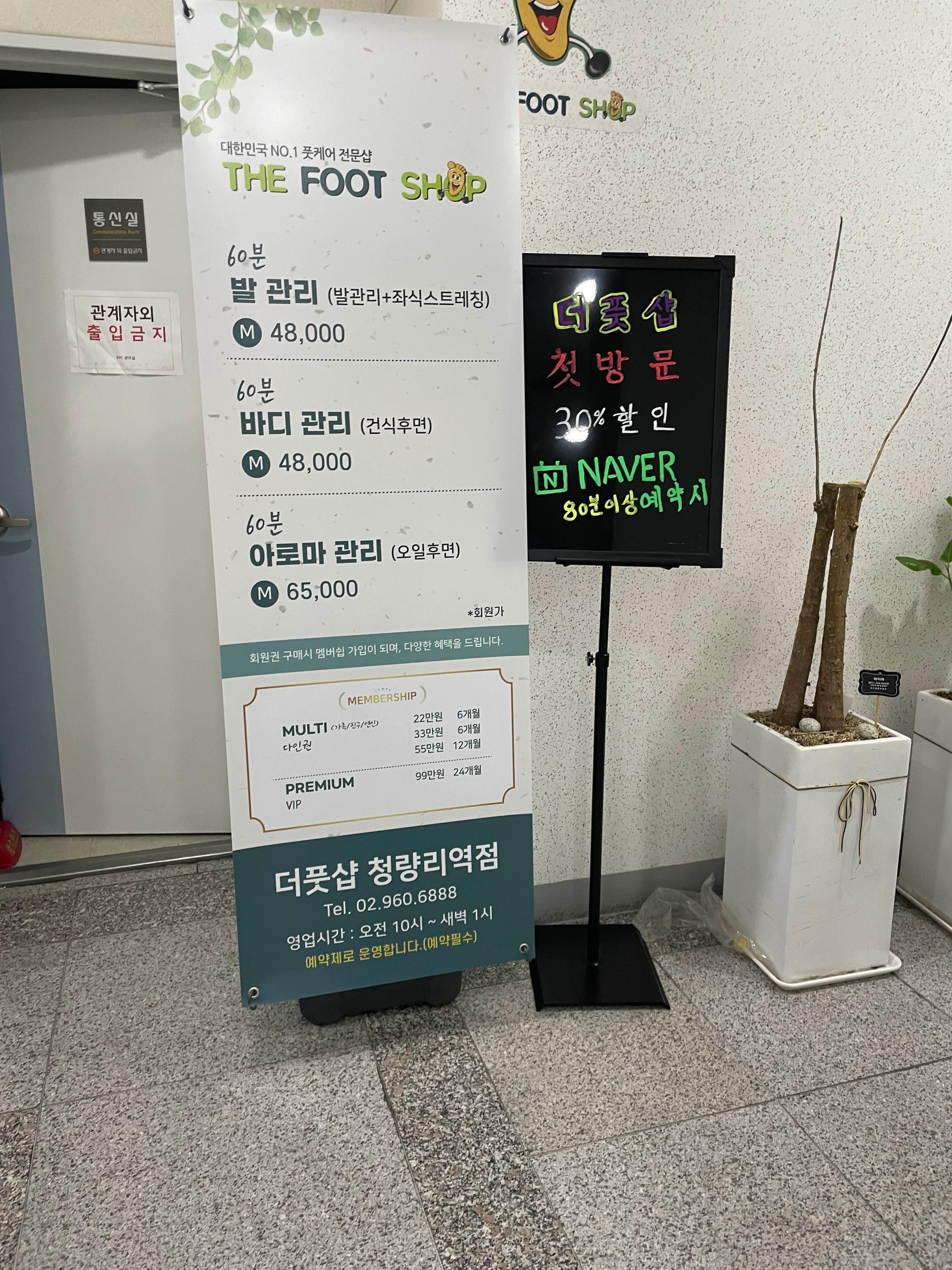 더풋샵청량리역점은 청량리역 6번 출구에 위치해 있는데요. 청량리 청과물시장 바로 맞은편, 청량리 수산사장 가기 전 byc 건물에 위치해 있어 찾기도 쉬웠어요. 건물이 새 오피스텔 건물이다 보니 내부 엘리베이터나 매장 모두 깨끗하더라고요.