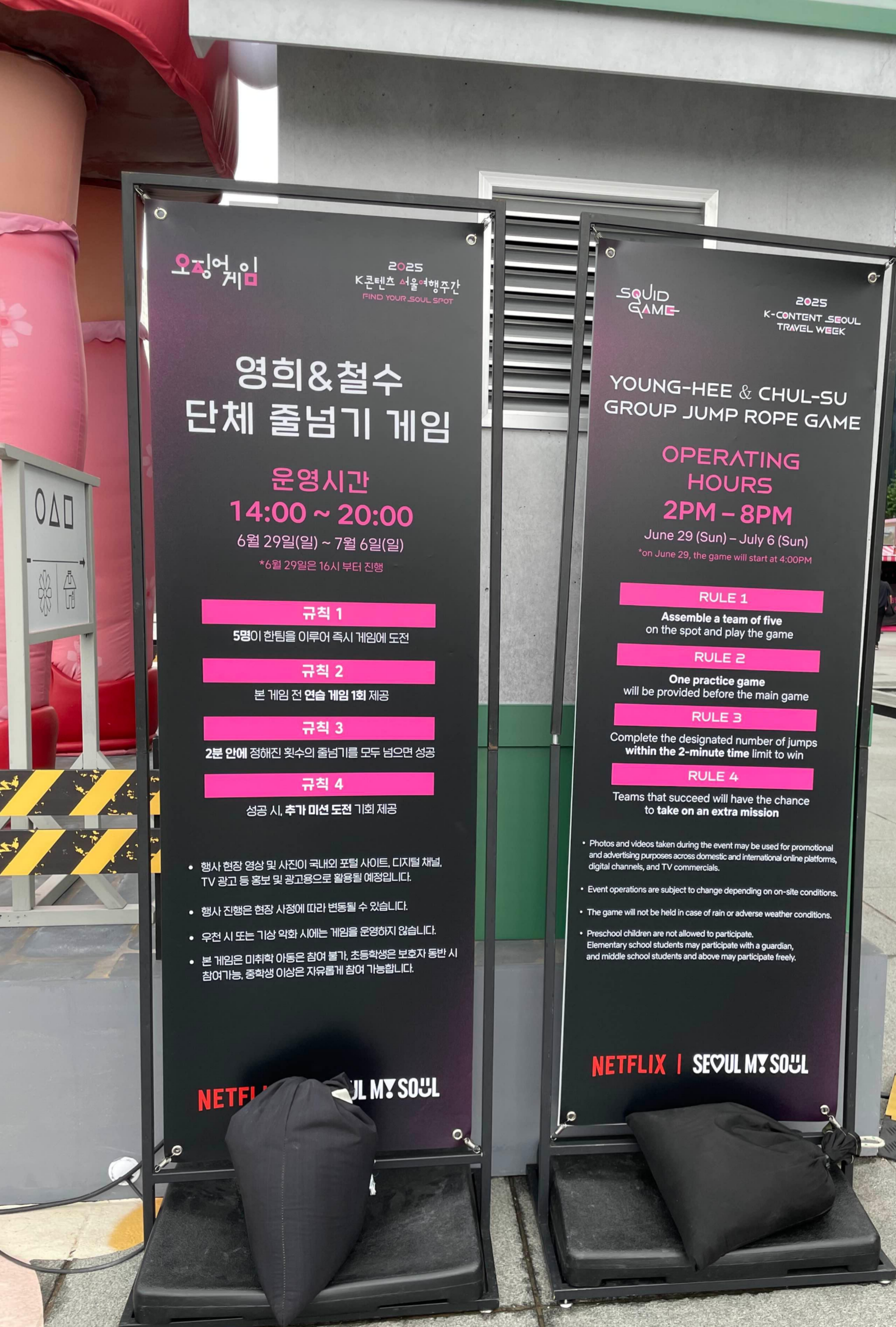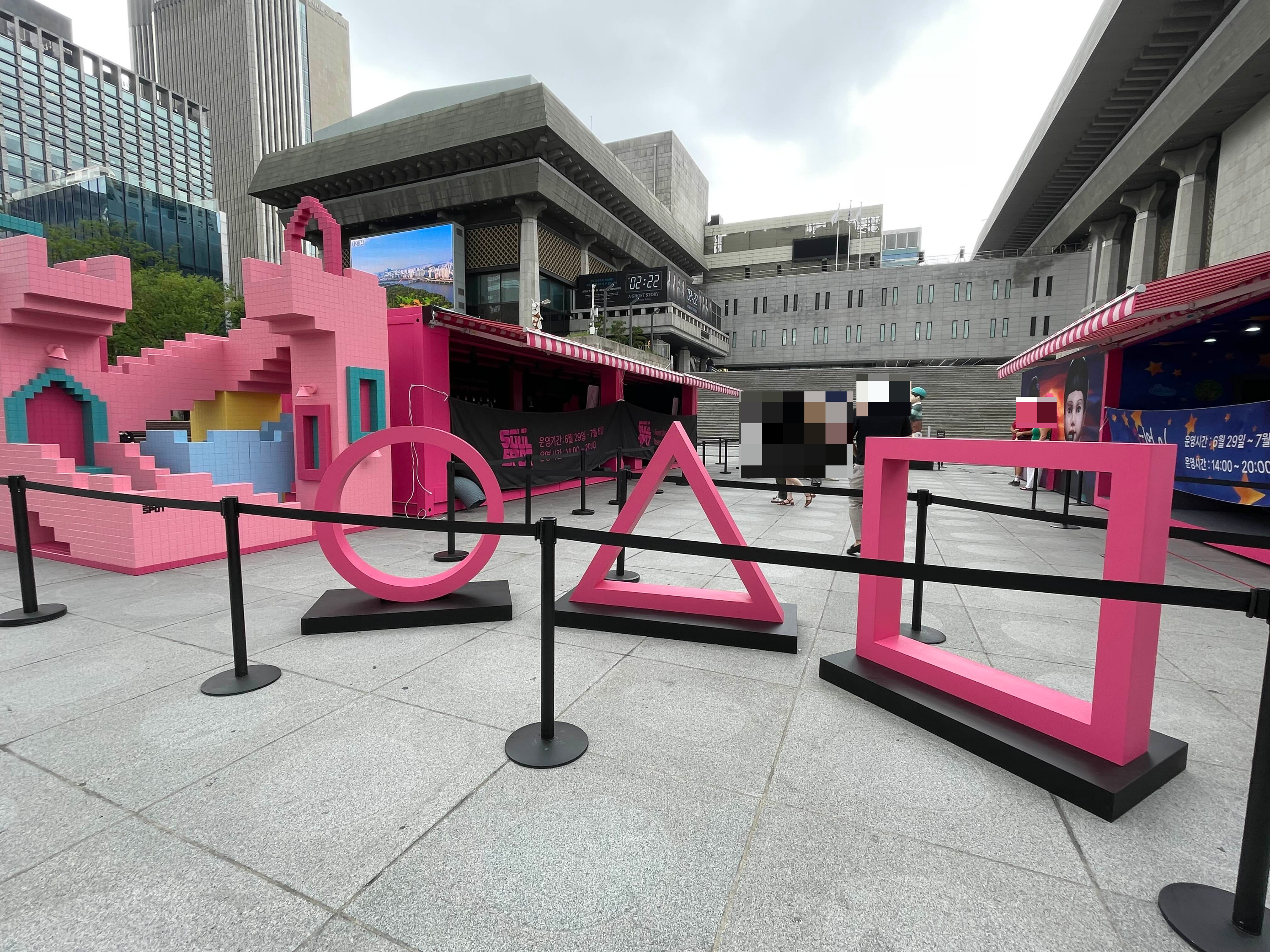 광화문 오징어게임 팝업 이벤트 기간은 6월 29일 ~ 7월 6일까지 약 일주일간 진행하고 있는데요. 운영시간은 14:00~20:00시라고 합니다. 저희는 점심쯤에 방문했더니 그냥 사진만 찍을 수 있더라고요.
