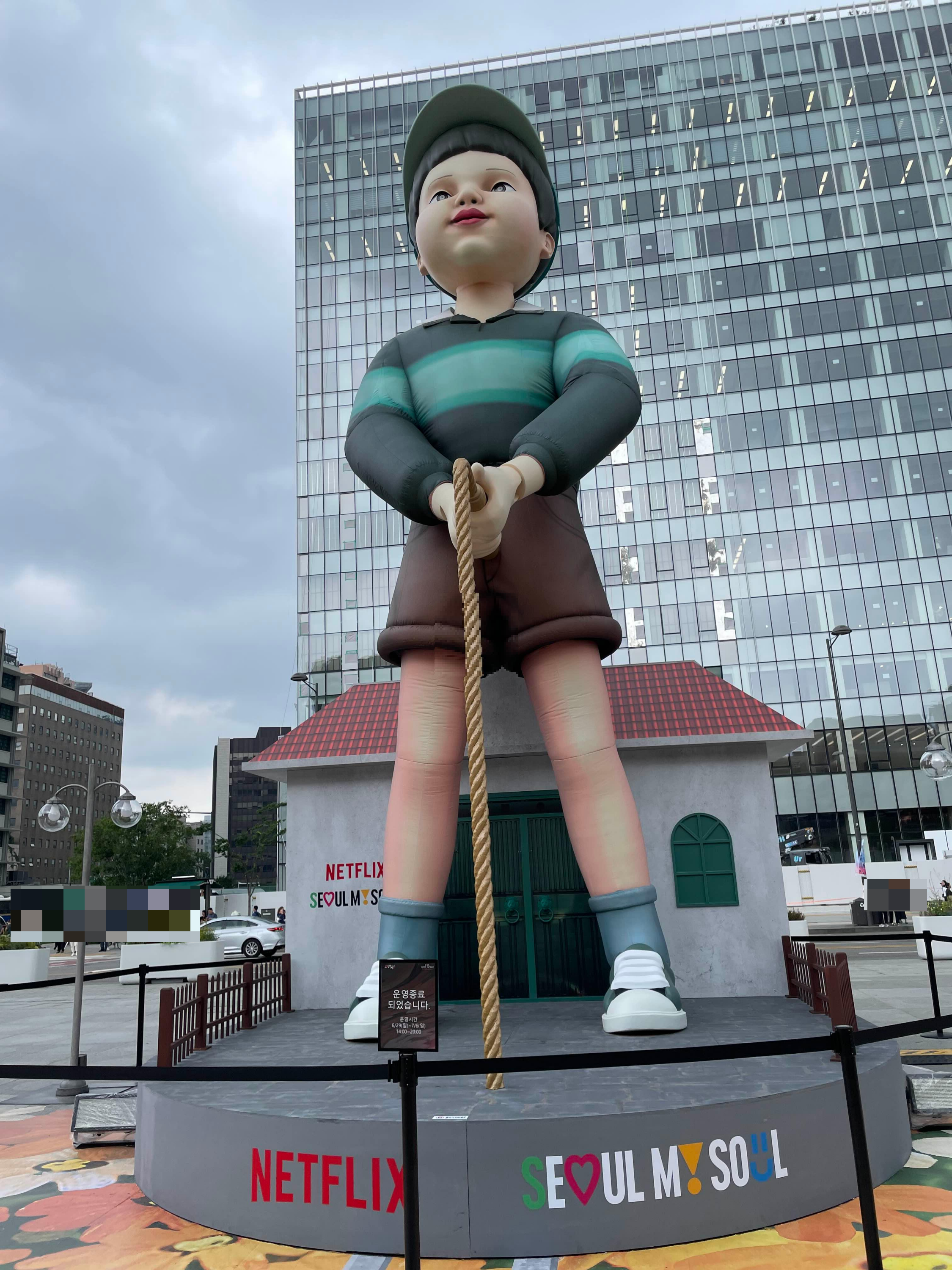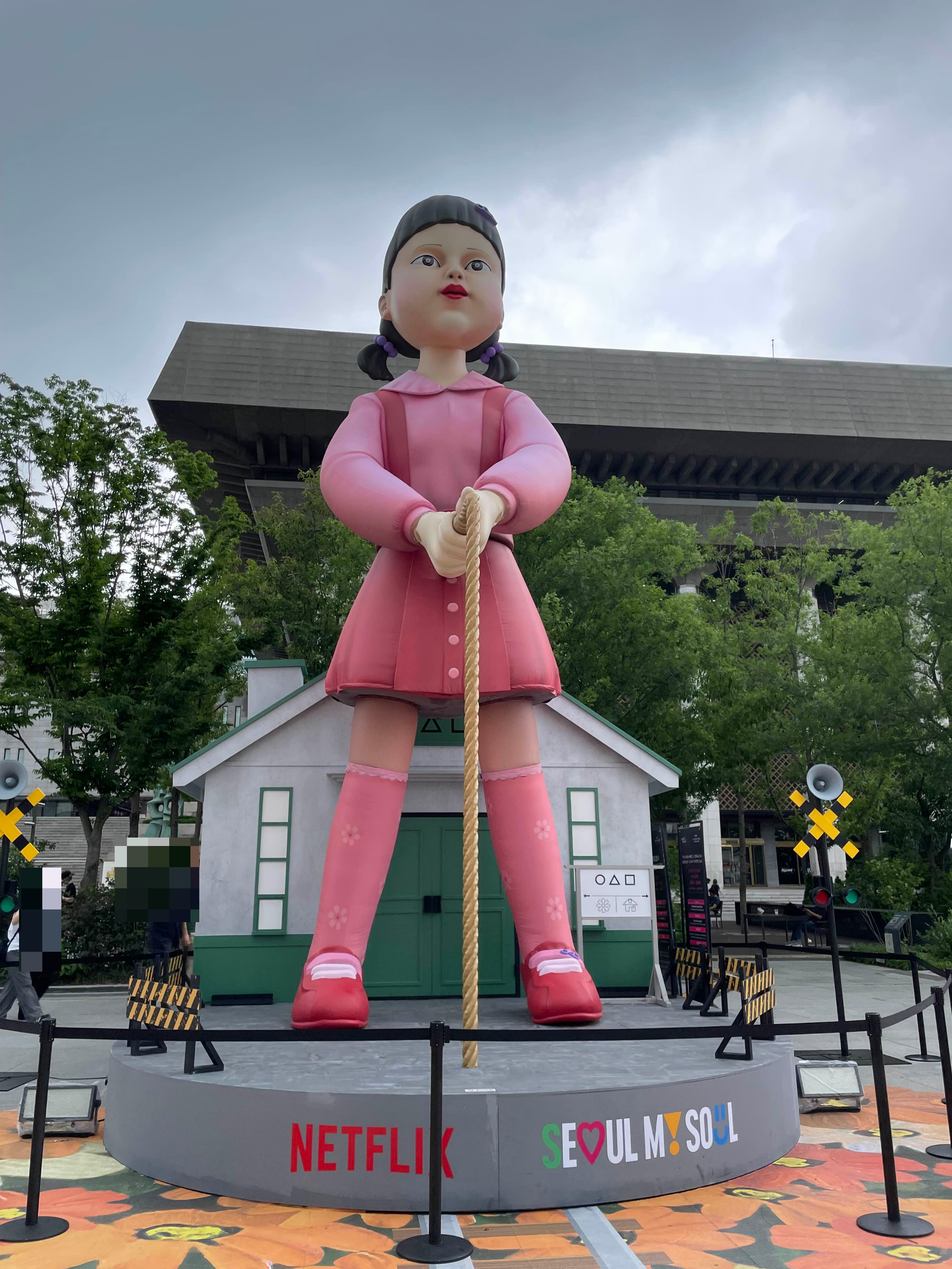 제일 처음 눈에 띄는 것은 역시 오징어 게임의 상징인 영희인데요. 영희가 인기 많은 것 같더라고요. 다들 여기서 사진을 많이 찍었답니다.