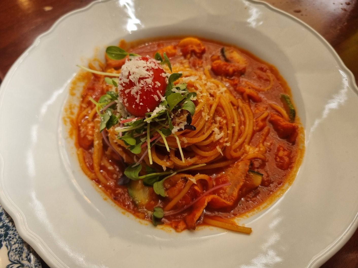 토마토 베이컨 파스타도 저희 입맛엔 좀 짜더라고요. 겨우 먹긴 했지만 결국 카페 가서 화장실 행 했어요... 너무 짜서 못 먹을 정도는 아니지만 그냥저냥 먹을만한 정도였어요.