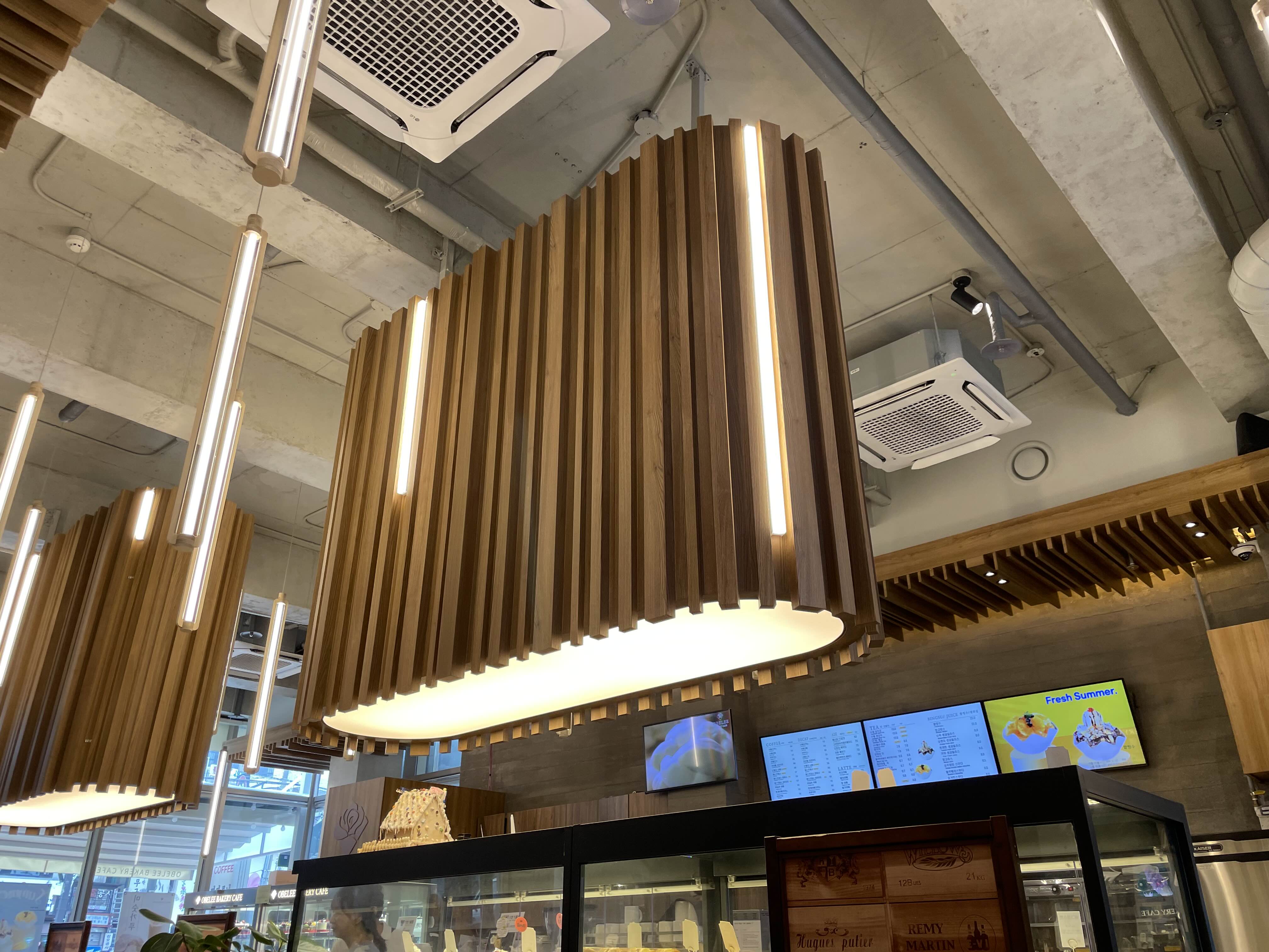 오벨리베이커리 카페는 문 앞에 야외공간도 마련되어 있고 내부는 1층과 2층 공간도 있더라고요. 더운 여름날 에어컨 바람을 맞으며 시원하게 있고 싶어서 대형 카페를 찾게 되었는데 잘 찾은 것 같아요. 1층은 층고가 좀 높아서 시원하고 개방감을 주었어요.