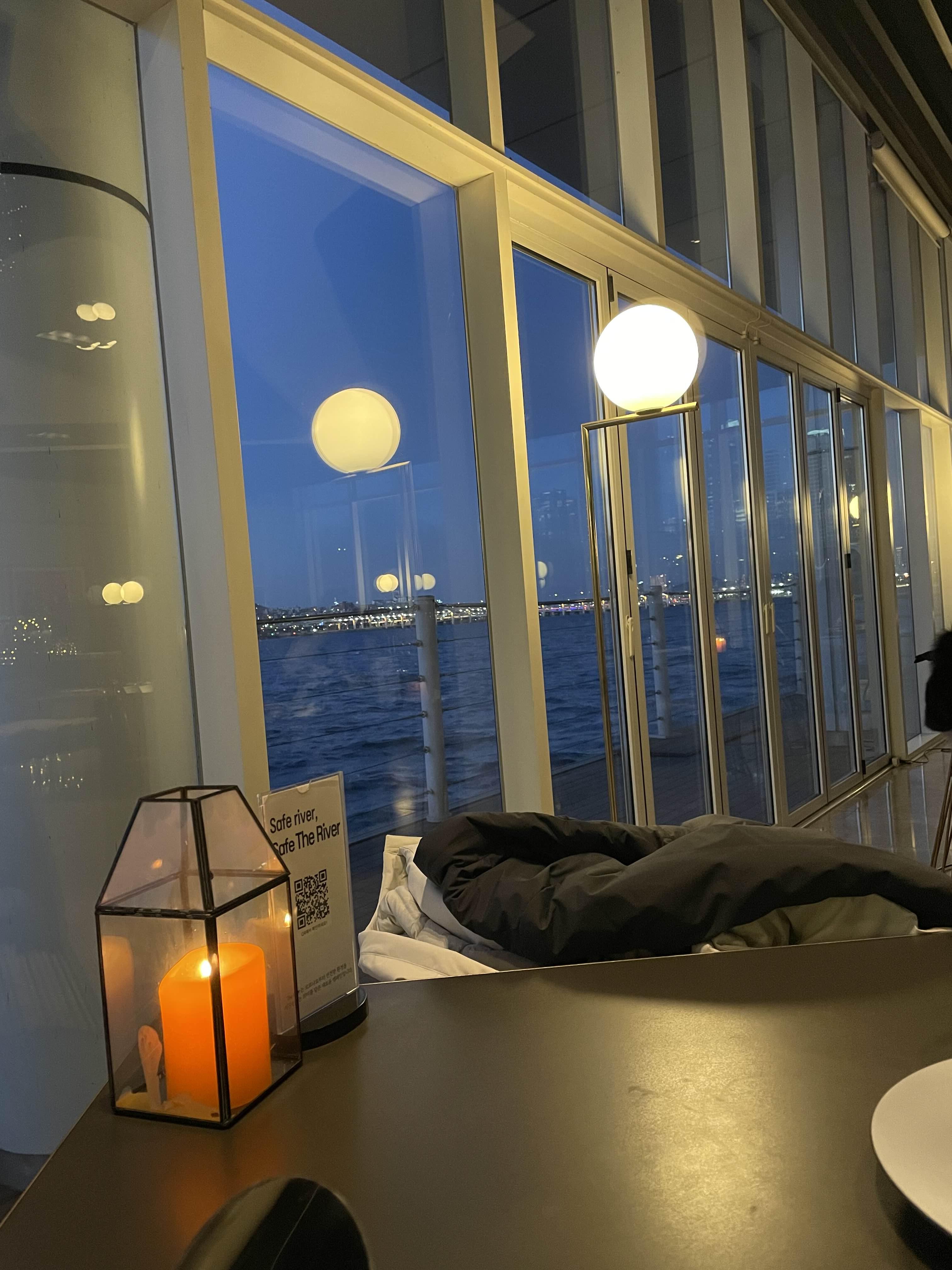 한강이 바로 눈앞에서 볼 수 있고 느낄 수 있어서 너무 좋았어요. 한강 위에 떠 있는 듯한 느낌이었고 더 직접적으로 한강뷰를 느낄 수 있었어요.