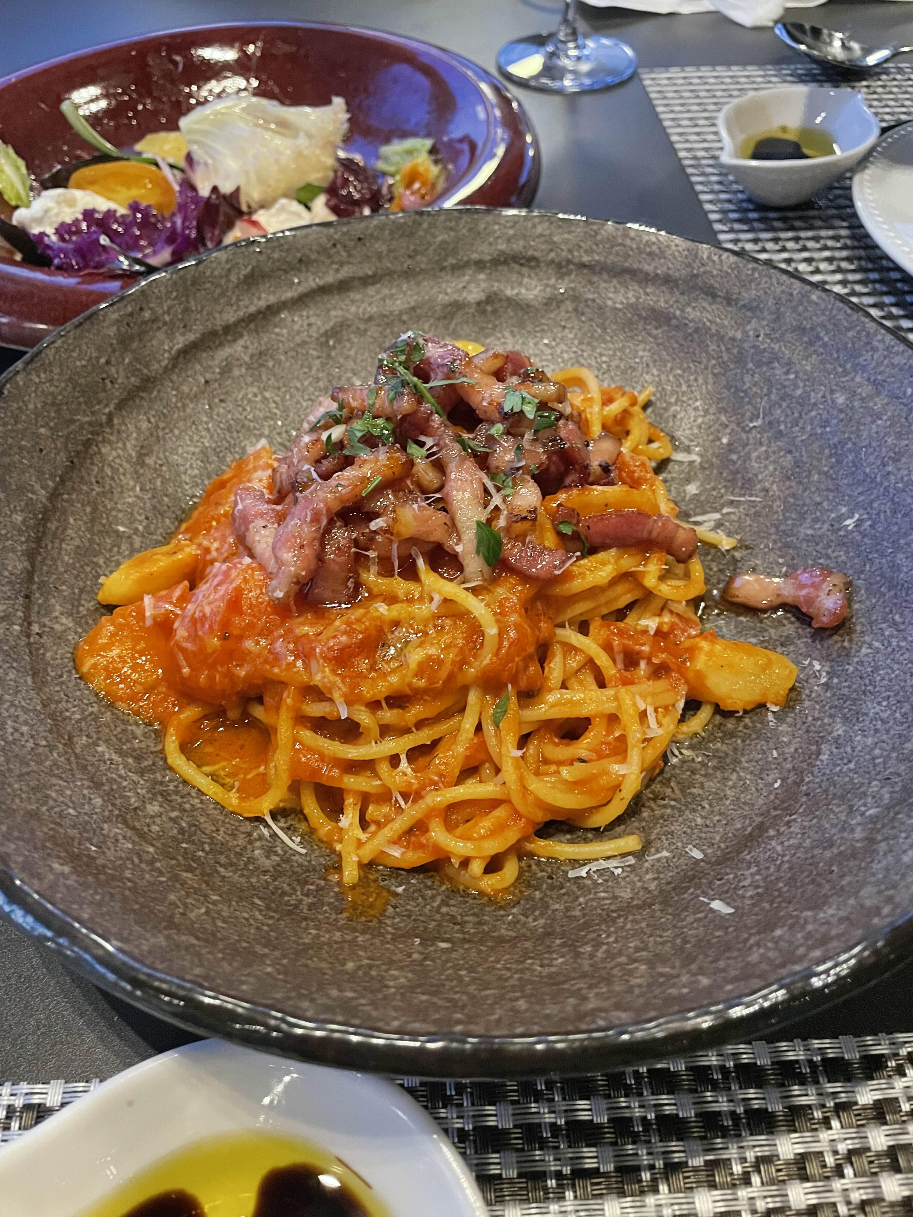 저희는 이날 2인 코스로 주문했는데요. 물론 앞에 나온 식전 요리도 맛있었지만 저는 이날 토마토 스파게티가 정말로 맛있었어요.