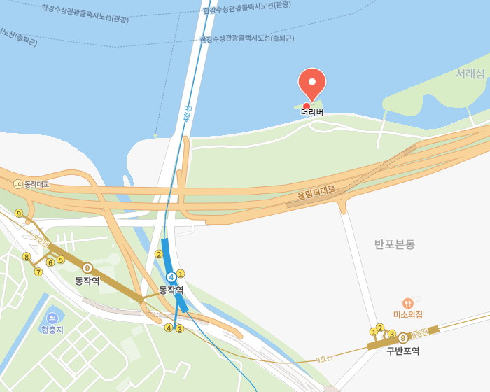 반포한강공원반포대교(잠수교)를 중심으로 상류는 한남대교, 하류는 동작대교 사이 강변 남단에 위치해 있고, 길이는 7.2㎞로 서초구 반포동, 동작구 흑석동에 인접해 있습니다. 한강르네상스
