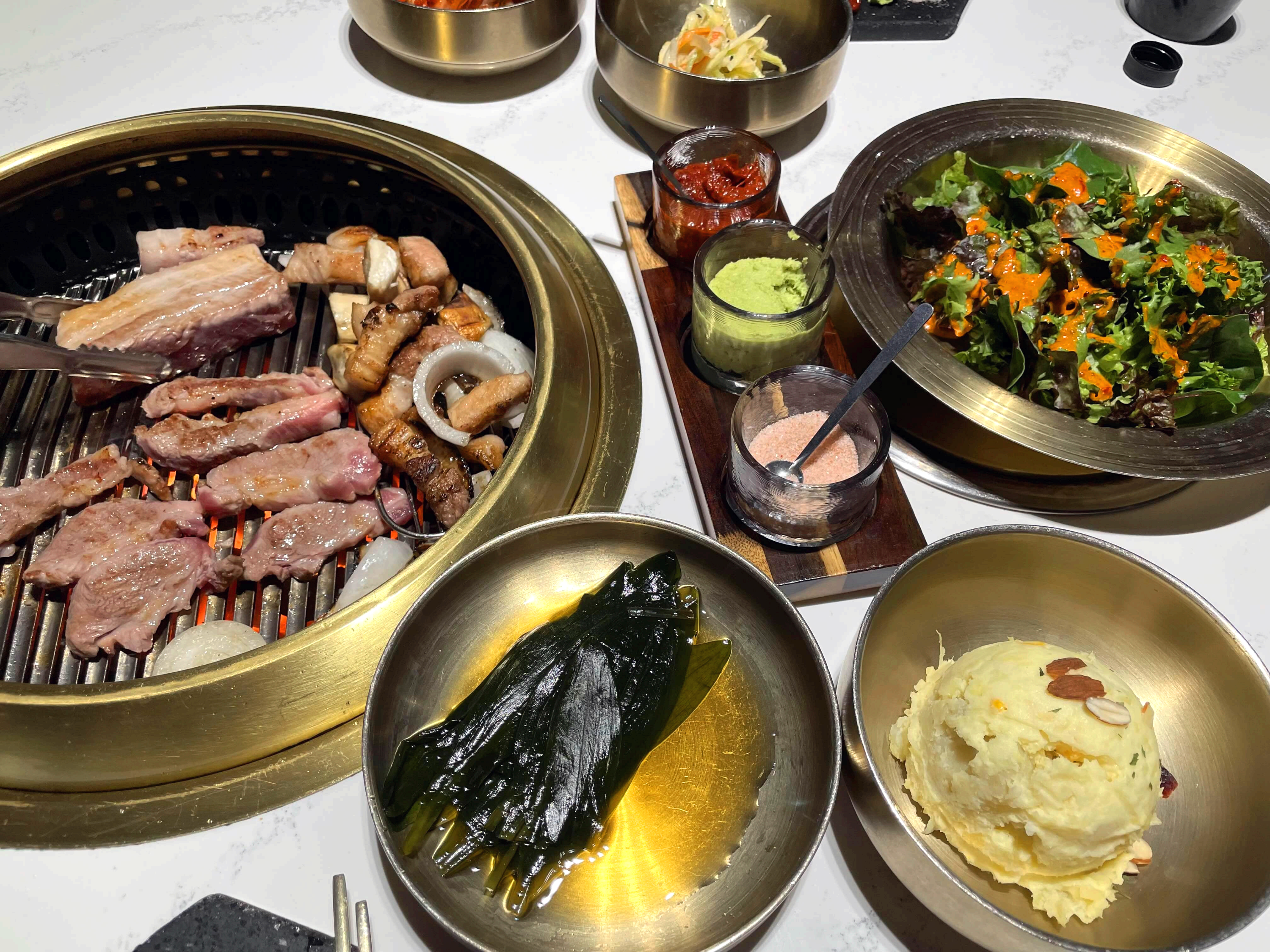 고기는 직원분이 오셔서 직접 구워 주시는데요. 구워 주셔서 편하긴 했어요.