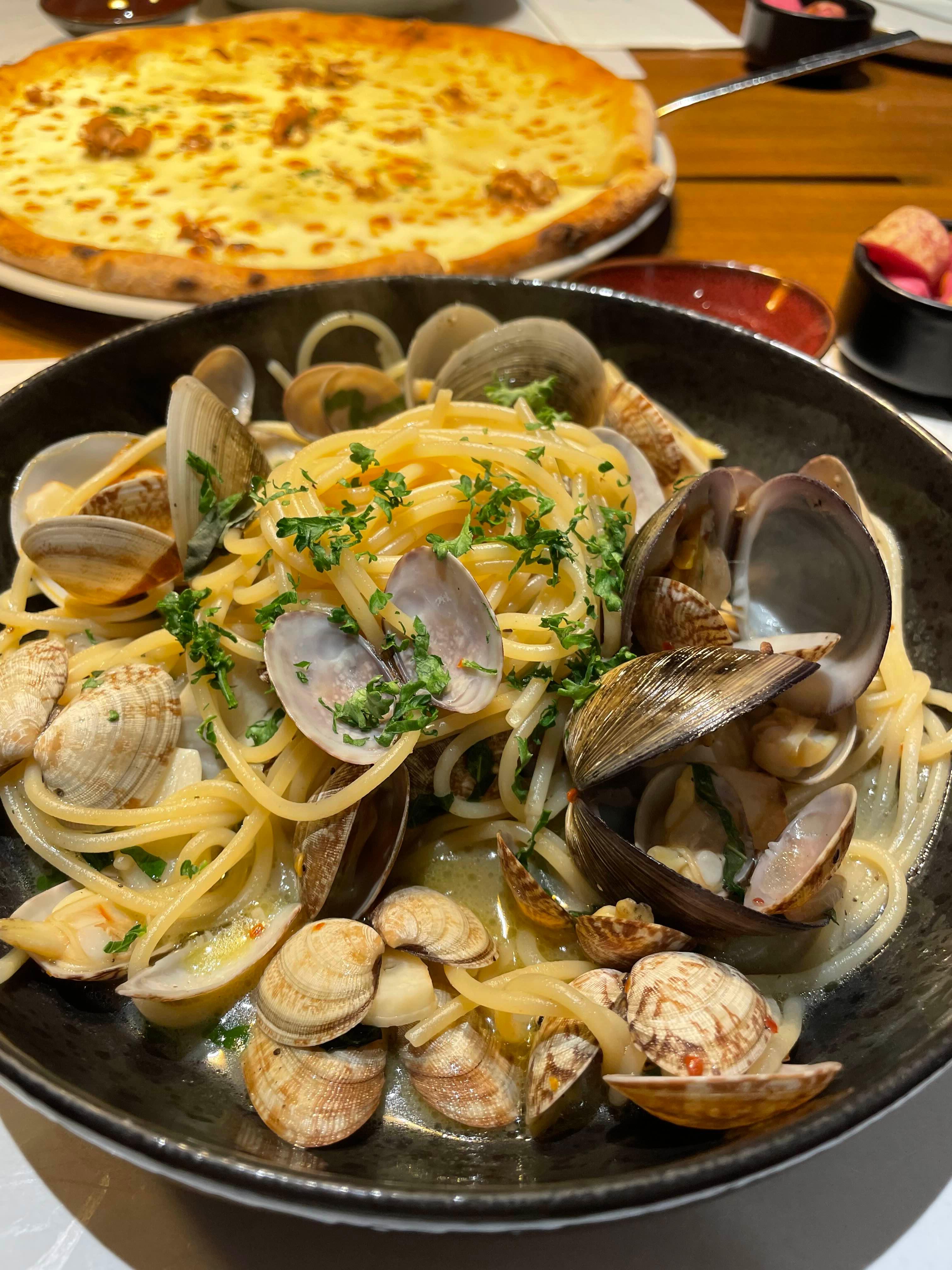 봉골레 파스타도 조개가 푸짐하게 있어서 파스타 저을 때 달그락달그락 조개소리 듣기 좋았어요.