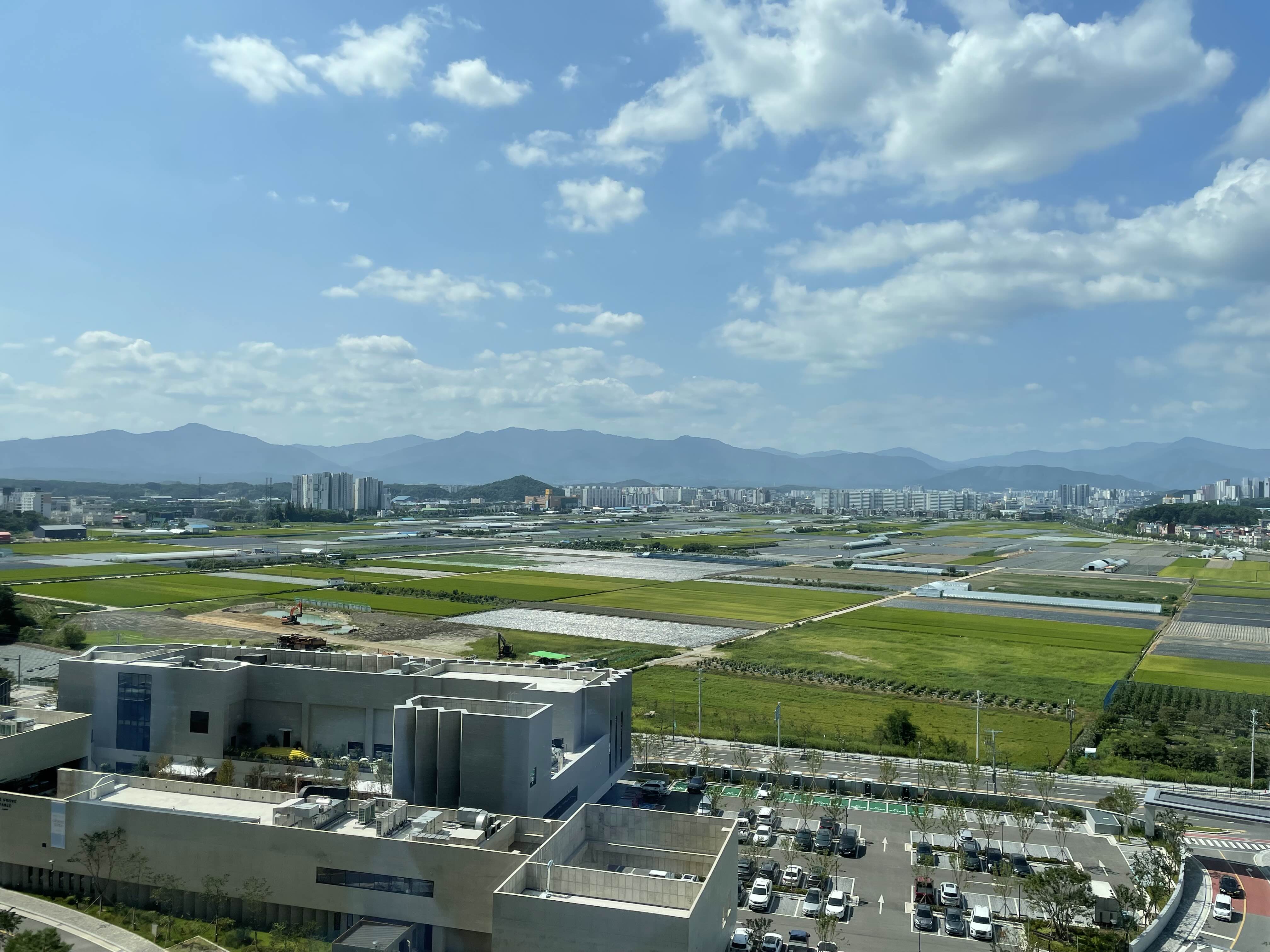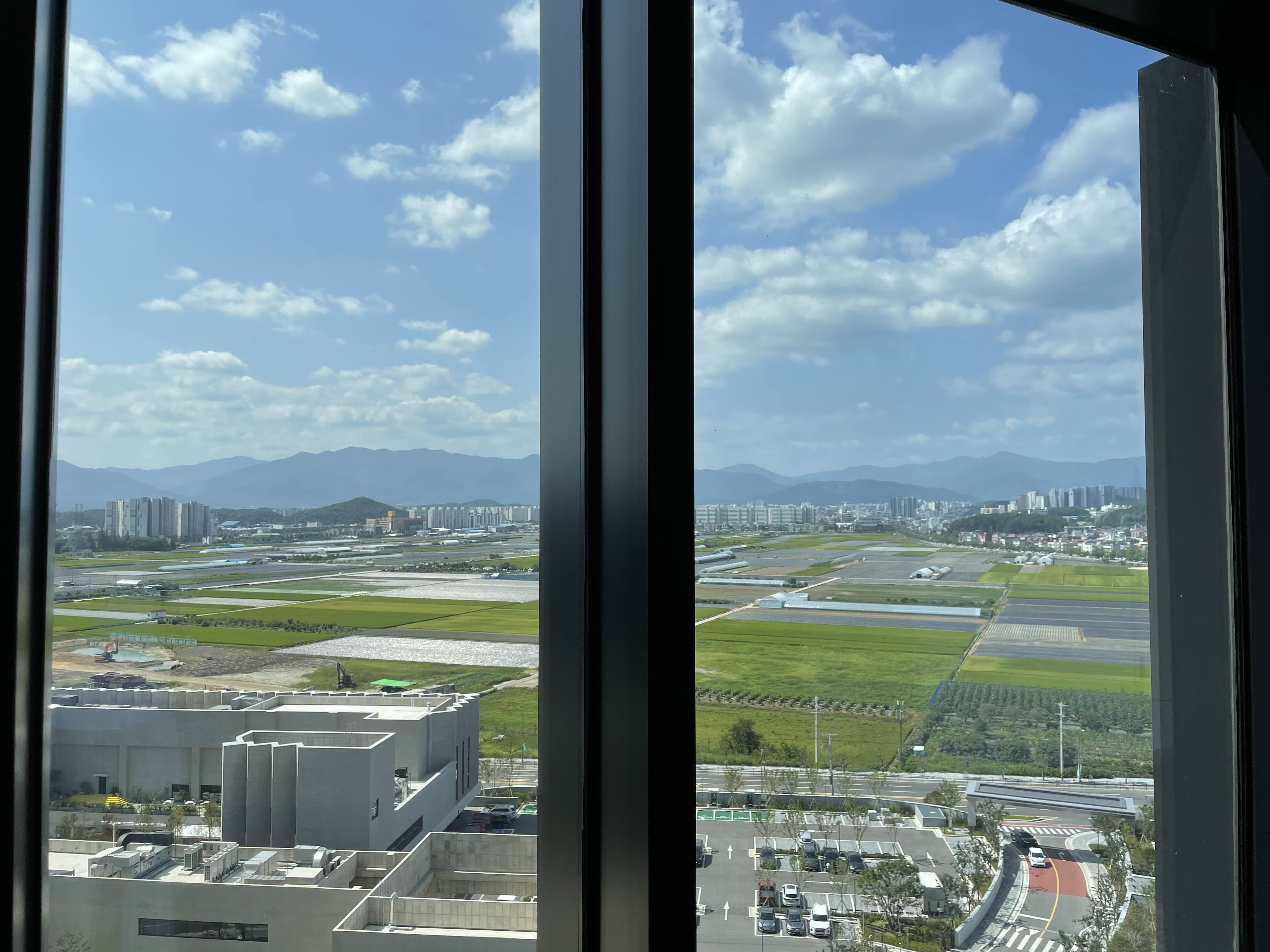 모노그램은 거의 다 오션뷰만 있는데요. 방으로 들어가면 바다가 보이고 방으로 나오면 이렇게 논밭이 보이더라고요. 복도 뷰랑 방에 뷰 모두 너무 예뻤어요.
