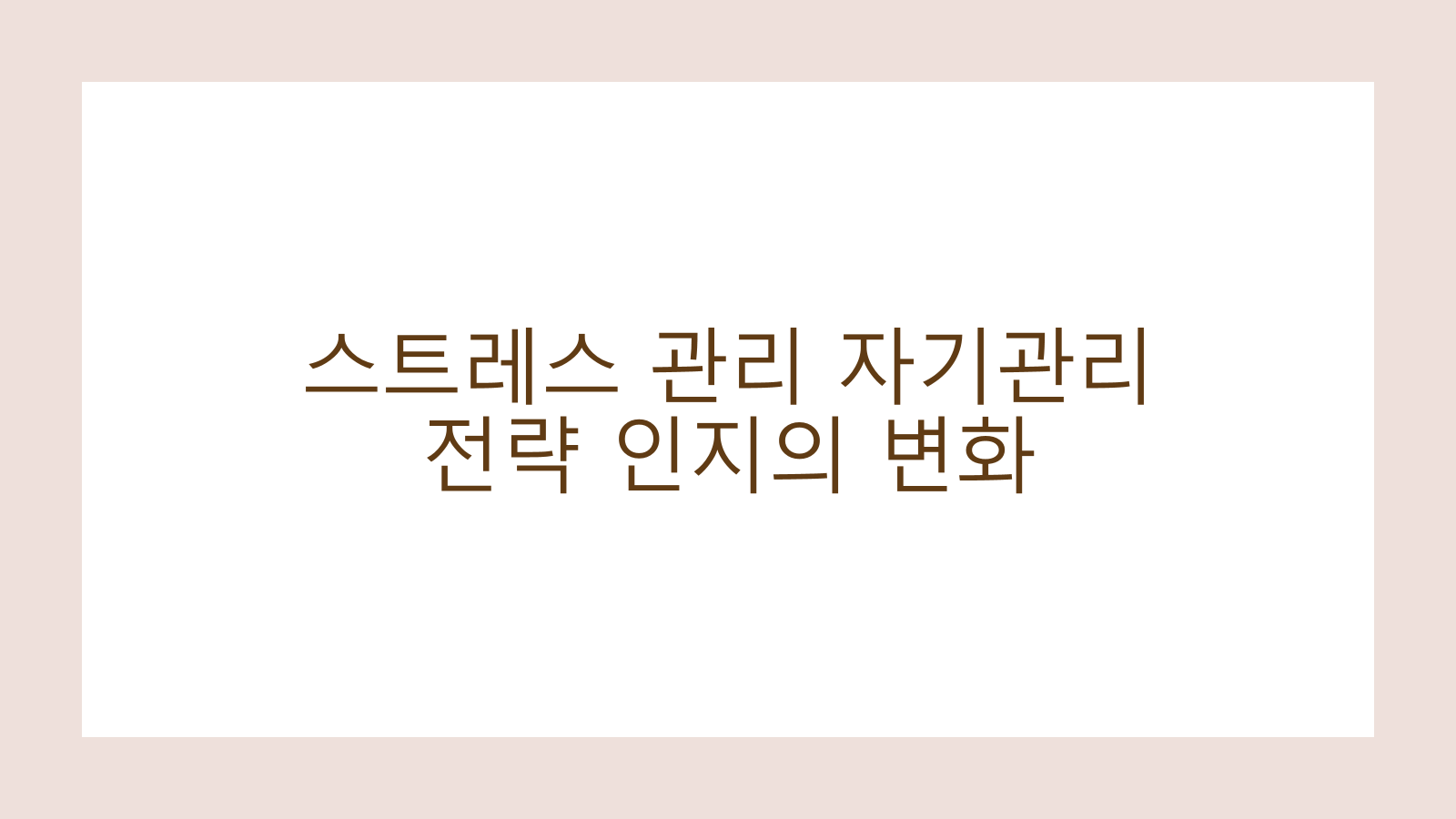 스트레스 자기 관리 전략