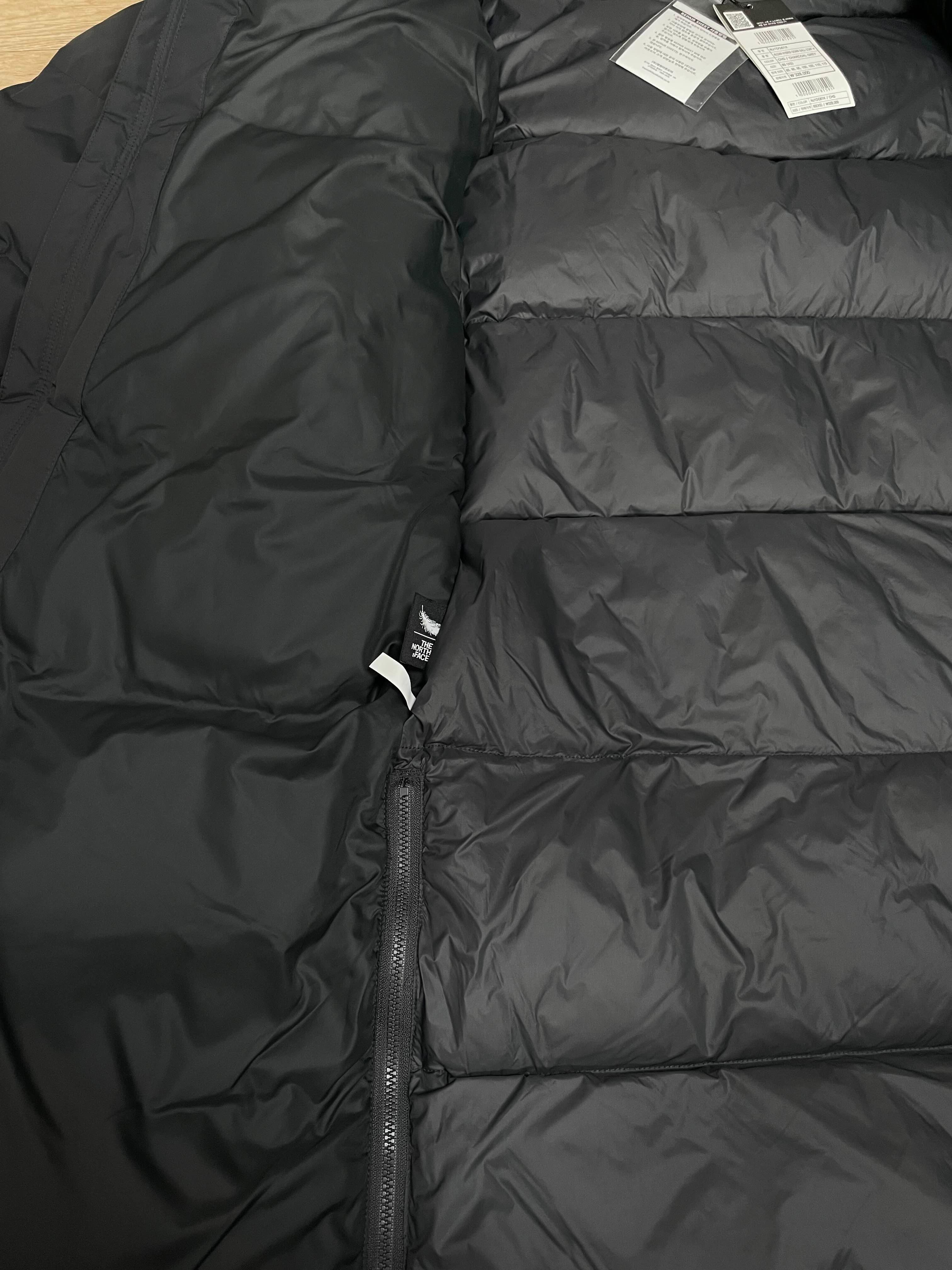 가장 중요하게 생각하는 넥라인인데요. 어떤 제품은 넥라인이 이렇게 살짝 전 같은 소재가 아닌 그냥 패딩 소재로 되어 있는 것도 있는데요. 스노우피크랑 케이투도 넥 라인이 비슷한 소재로 사용되었지만 저는 노스페이스 소재가 더 마음에 들었어요.